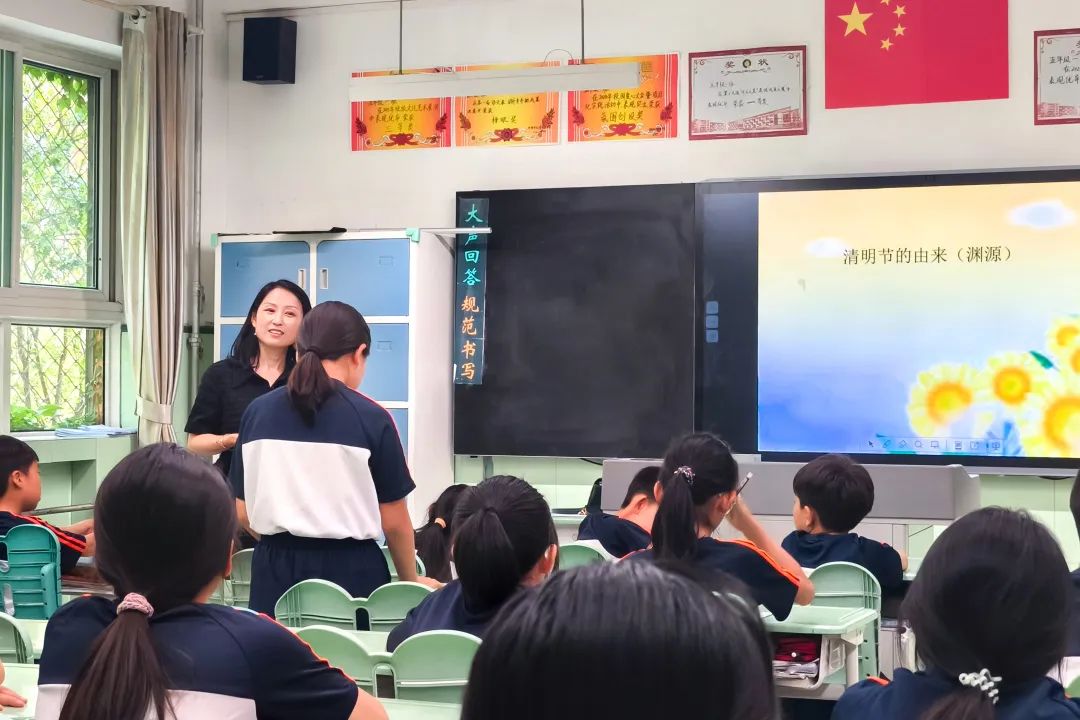 五年级一班邀请苗雨萌妈妈走进学校,以“中国传统节日的趣味密码”为主题,通过深入浅出的讲解和生动有趣的互动,带领同学们开启了一场别开生面的文化探索之旅。她从传统节日的冷知识入手,结合济南本土文化地标的精彩故事,以及中外节日文化的对比,让同学们在轻松愉快的氛围中感受中华传统文化的独特魅力。