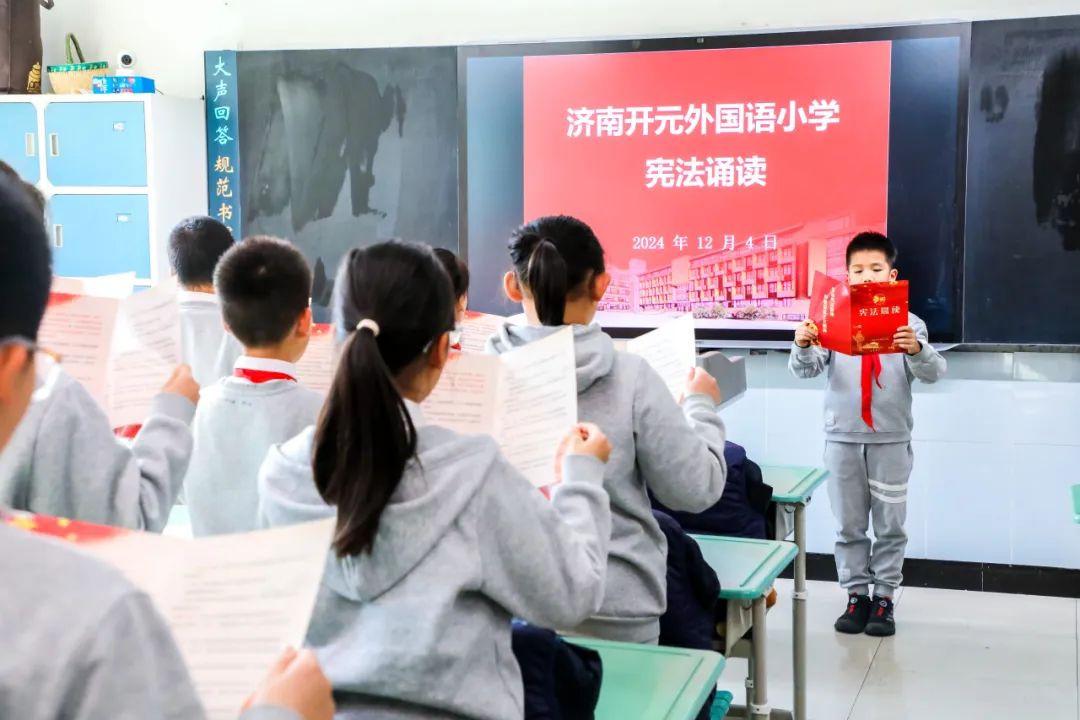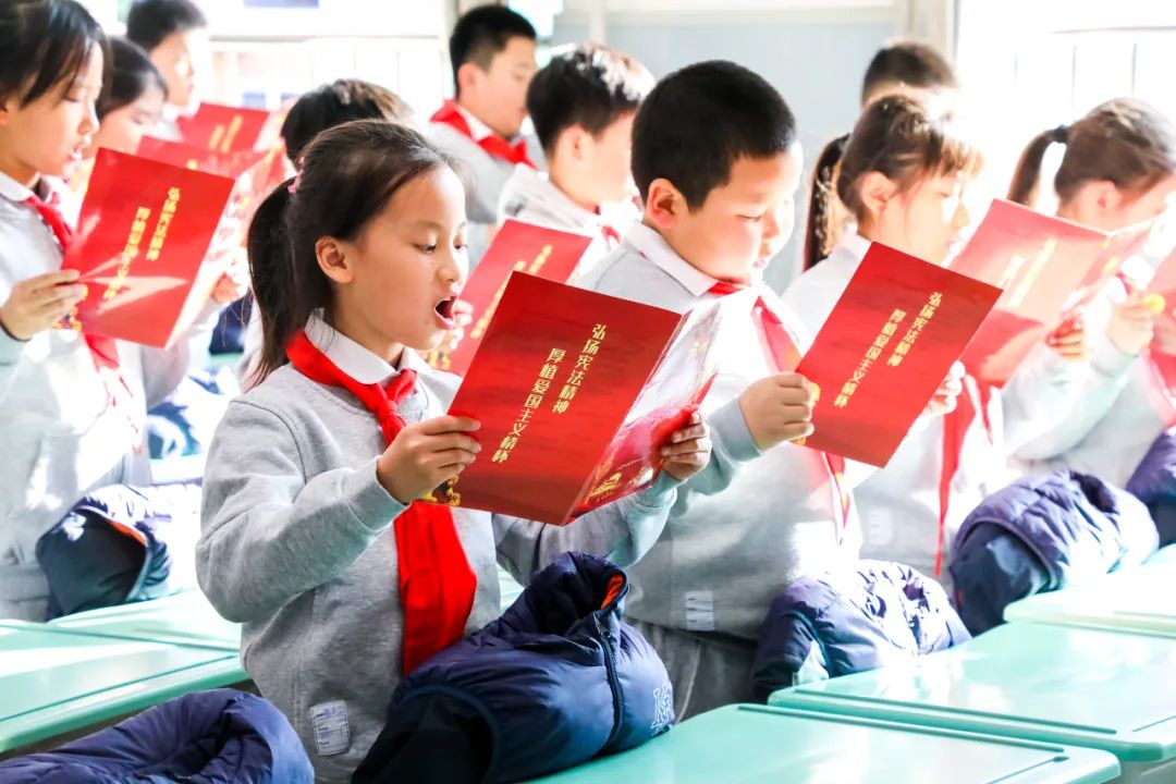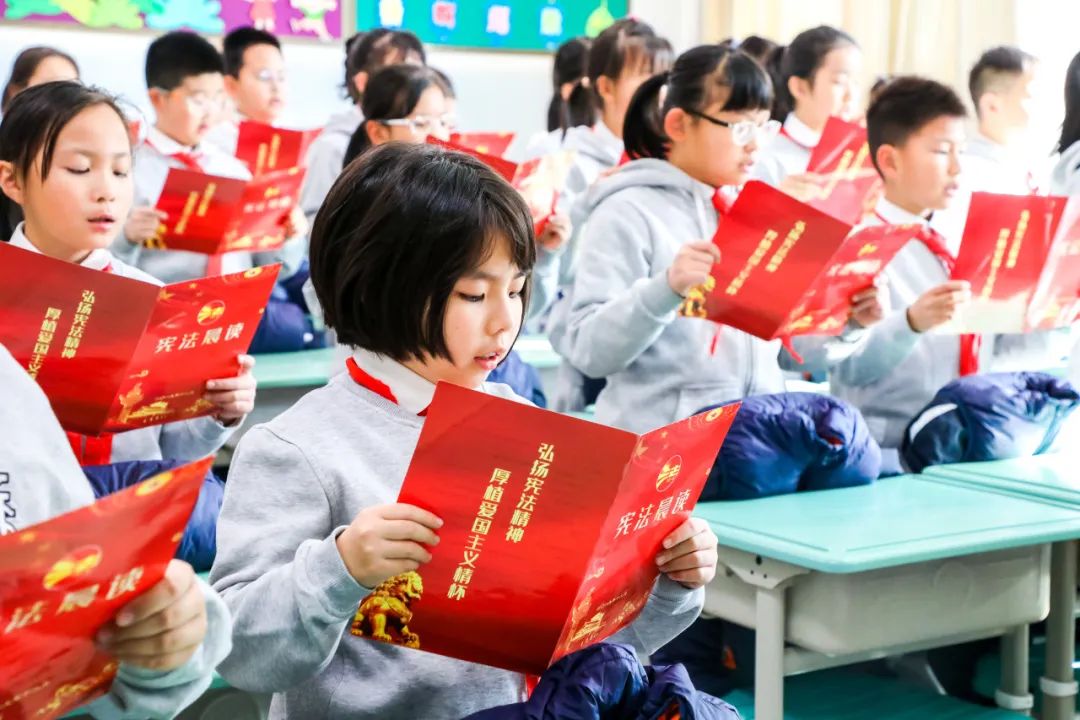 在“12·4”国家宪法日当天,利用每周一歌时间组织宪法诵读活动。号召全校学生积极学宪法,认真守宪法,用宪法维护国家、集体和公民个人的权利,同时树立宪法权威,弘扬宪法精神,营造遵守宪法人人有责的正义氛围,做一个知法、懂法、守法的新时代小公民。