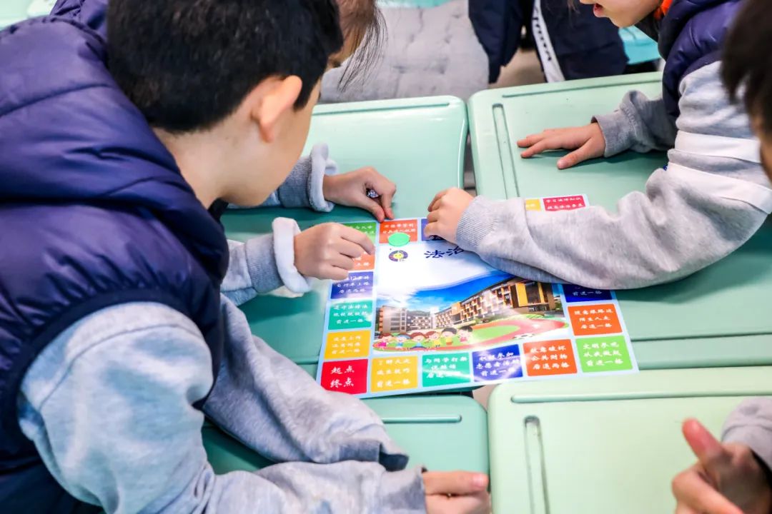 一二年级学生利用下午大课间,进行“法治飞行棋”游戏闯关活动。孩子们在正副班主任的指导和帮助下,跟随着骰子投掷的点数,根据飞行棋盘上的提示,时而回答法律问题,时而领取前进的奖励,时而接受后退“惩罚”……他们热情高涨,都积极认真地投入到趣味普法活动中,场上欢声不断,场外跃跃欲试,现场气氛热闹非凡。