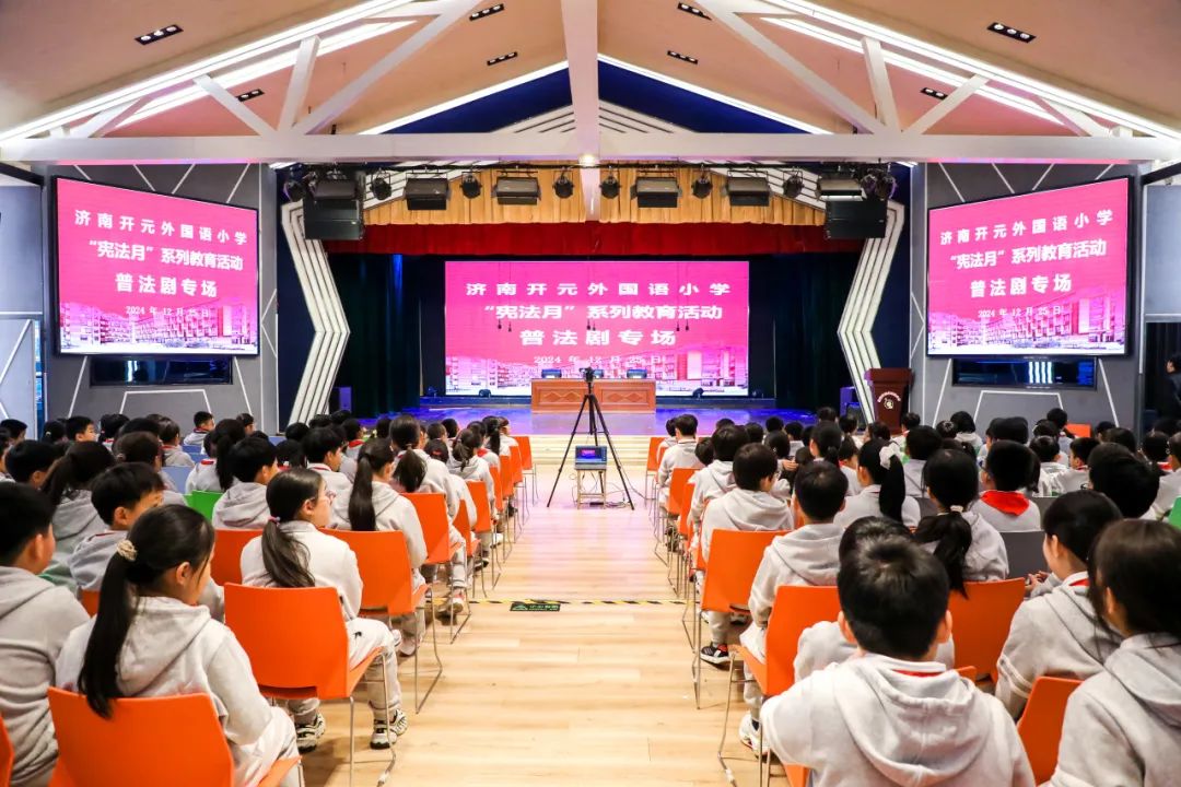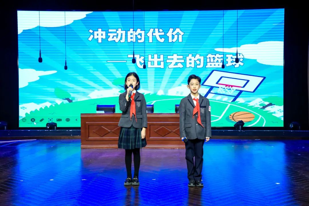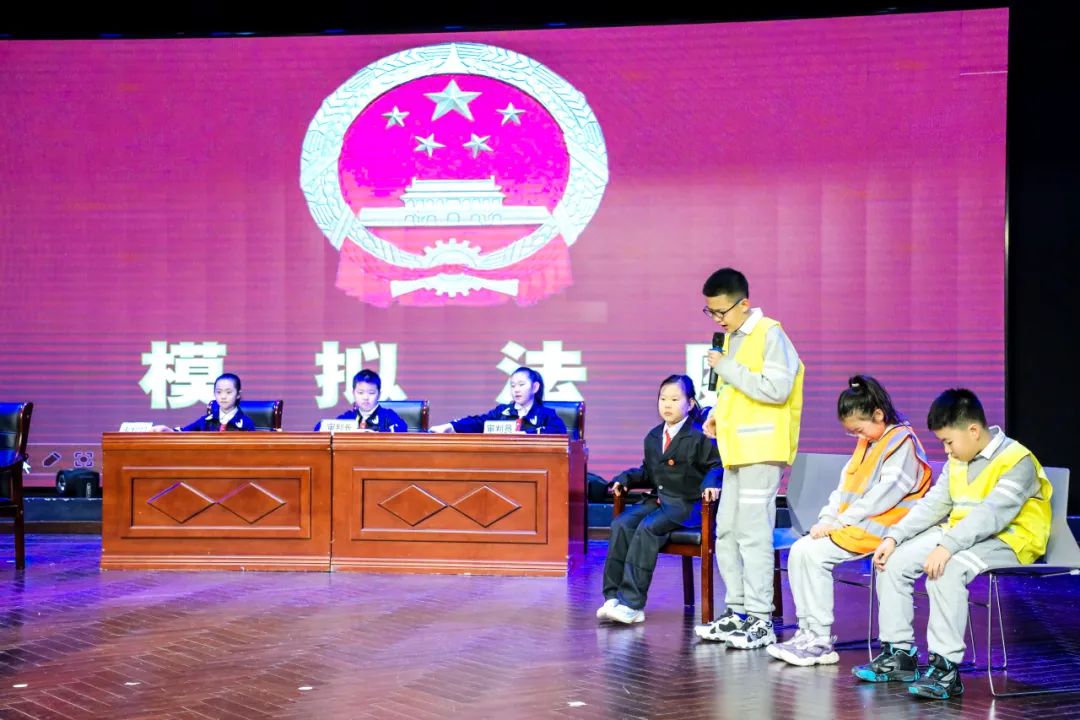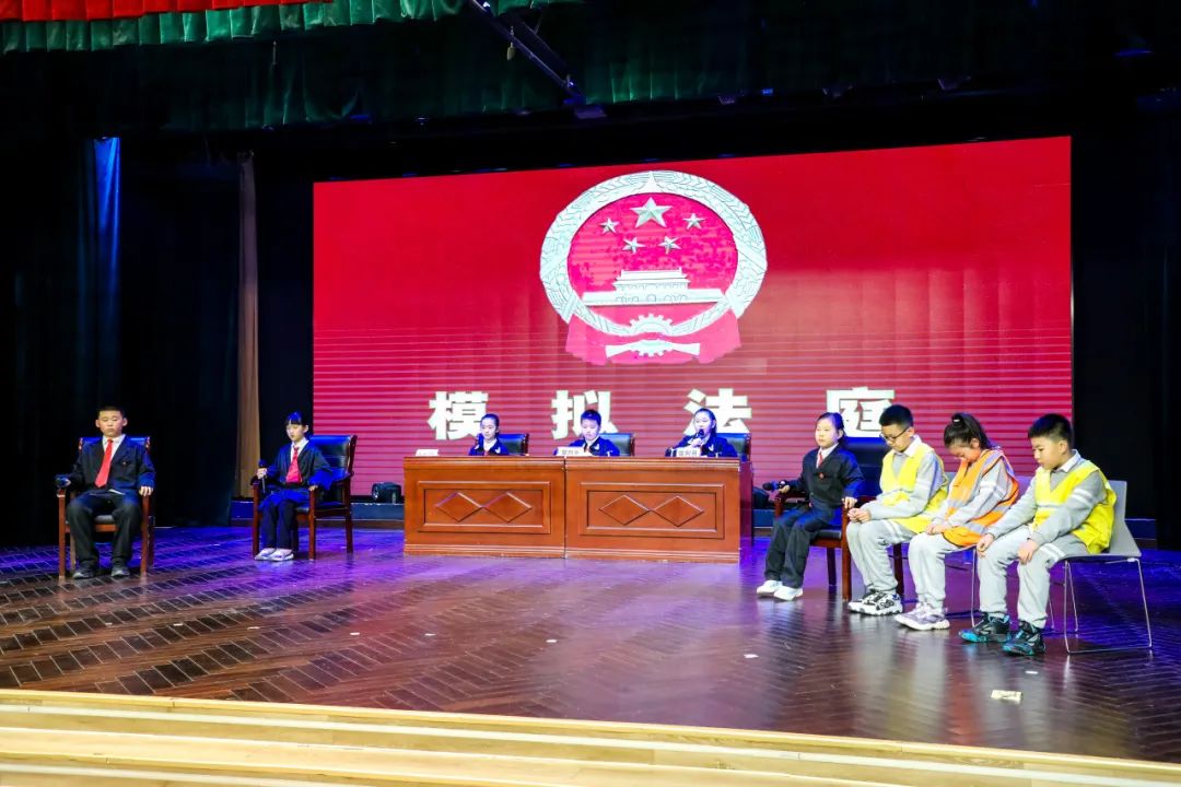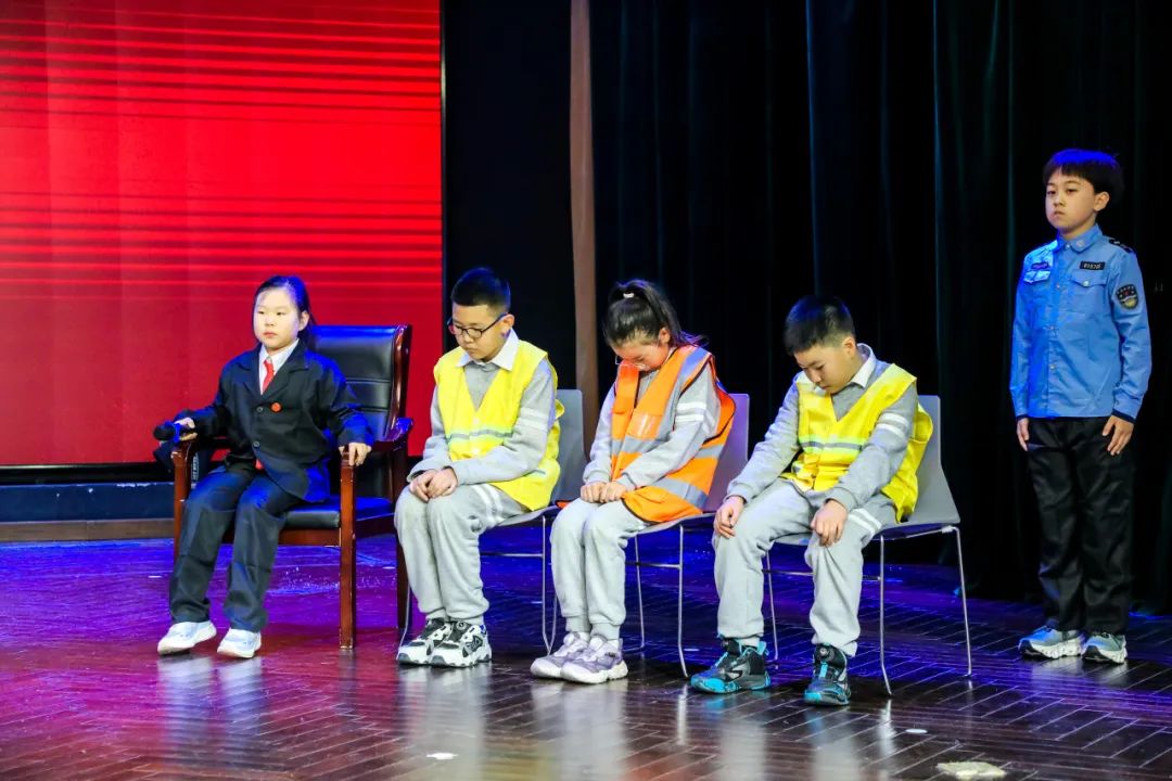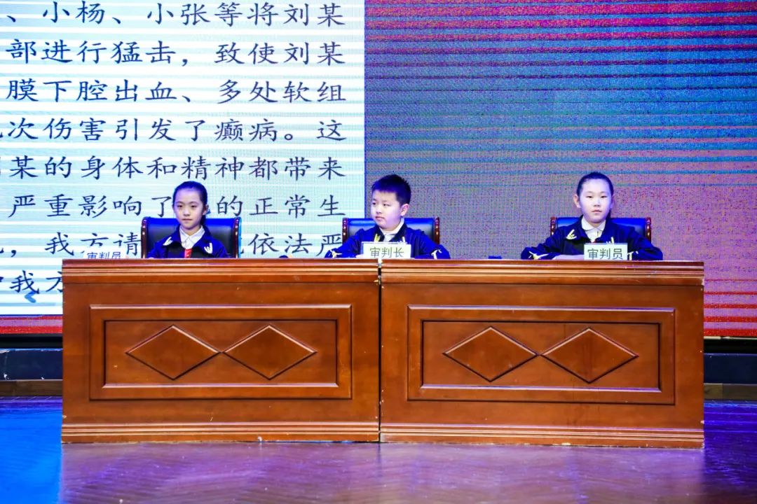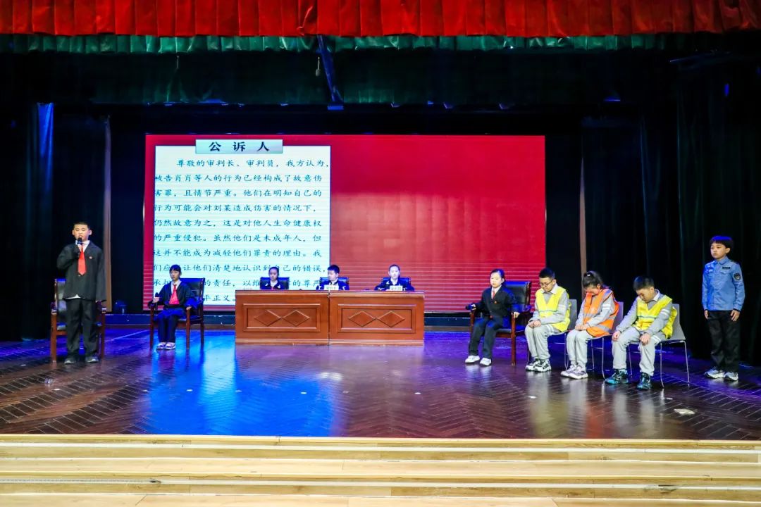 12月25日下午,戏剧社团的师生又以《冲动的代价——飞出去的篮球》为主题,现场为三至六年级学生演绎了同学之间因小矛盾不断升级,导致严重后果的生活场景。同时,通过审判长、审判员、书记员、公讼人、辩护人、被告人、法警等角色的扮演,按照一审普通程序模拟审理情景剧中发生的未成年人故意伤害案,以案说法,用生动、形象的方式加深学生对宪法条款的理解,切实增强学生的法治意识和自我保护能力。