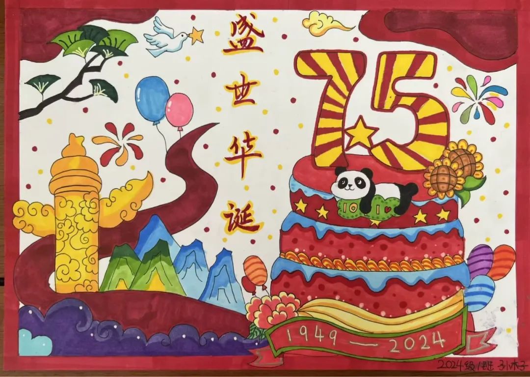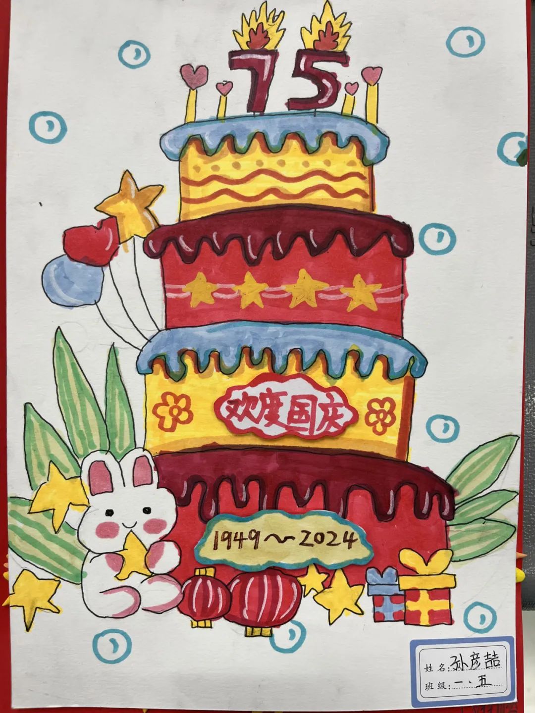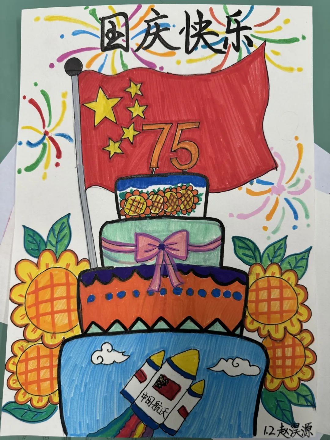 妙笔绘山河,五六年级的同学们则以画笔为媒介,用心勾勒出心中最美的祖国,用热情洋溢的画面表达出对祖国的赞美与祝福。这些饱含爱国之作犹如一颗颗璀璨的星,照亮了同学们纯真的爱国之心。