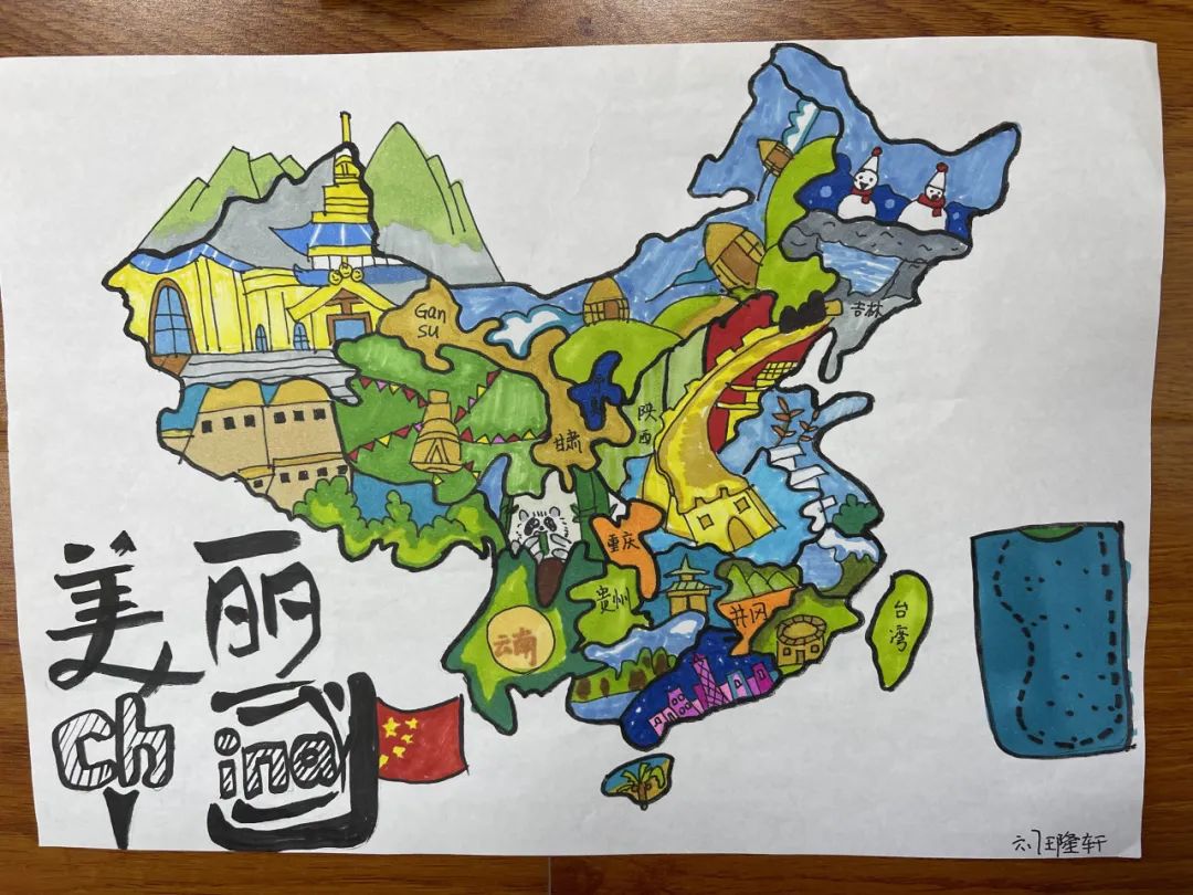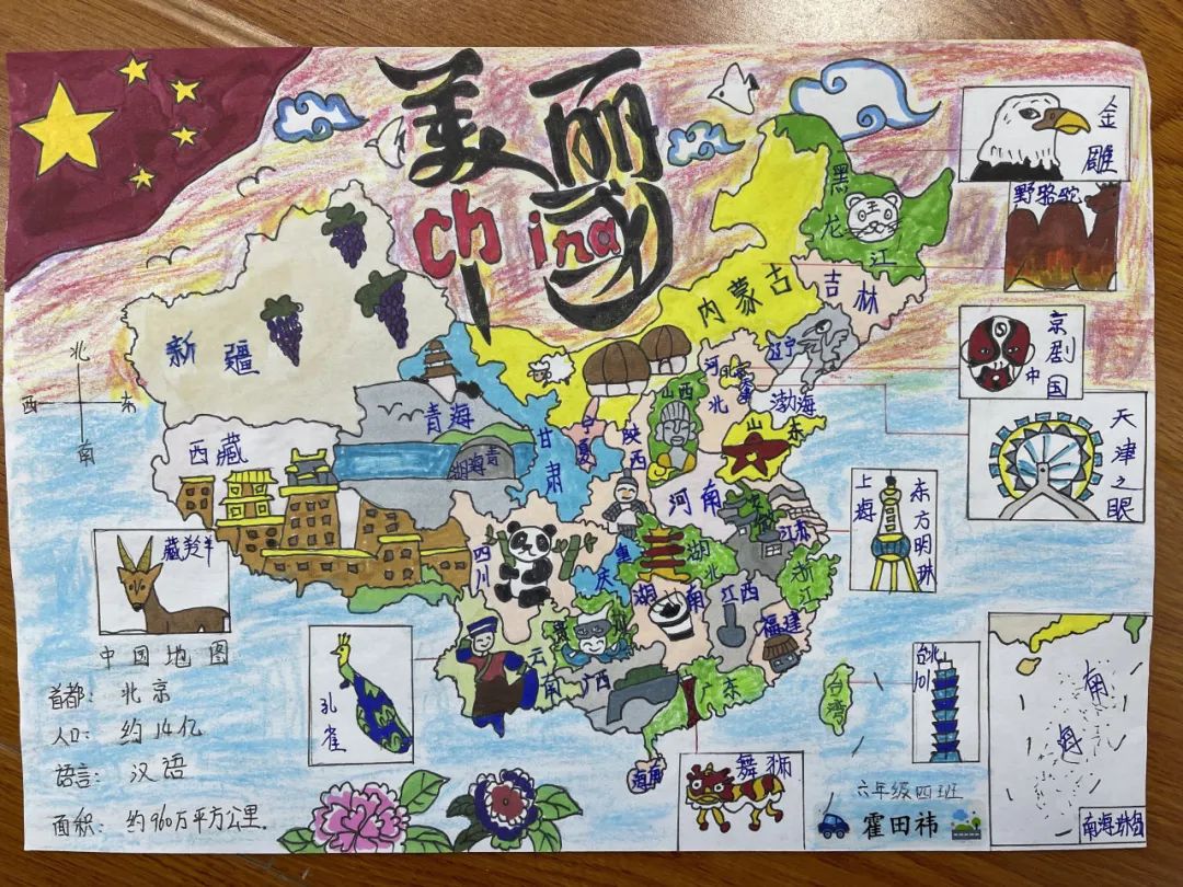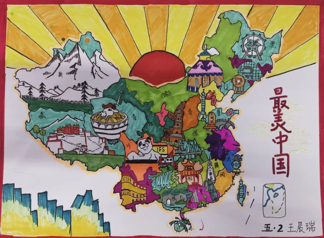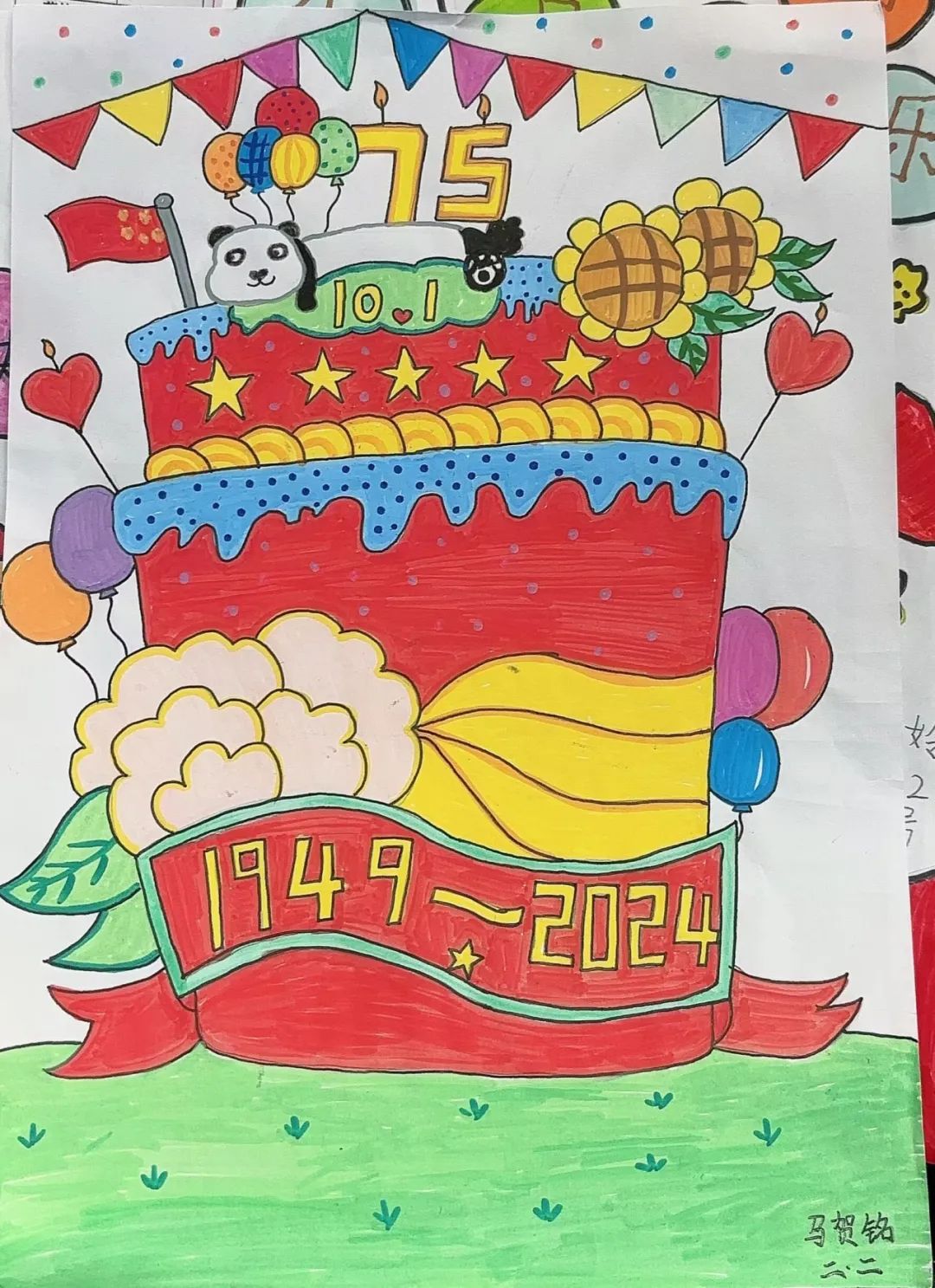 妙笔绘山河,五六年级的同学们则以画笔为媒介,用心勾勒出心中最美的祖国,用热情洋溢的画面表达出对祖国的赞美与祝福。这些饱含爱国之作犹如一颗颗璀璨的星,照亮了同学们纯真的爱国之心。