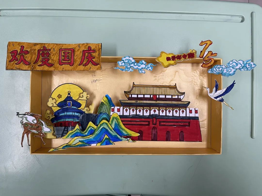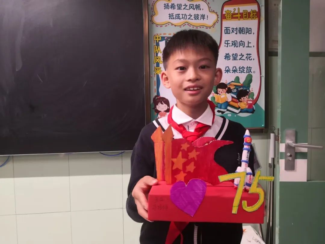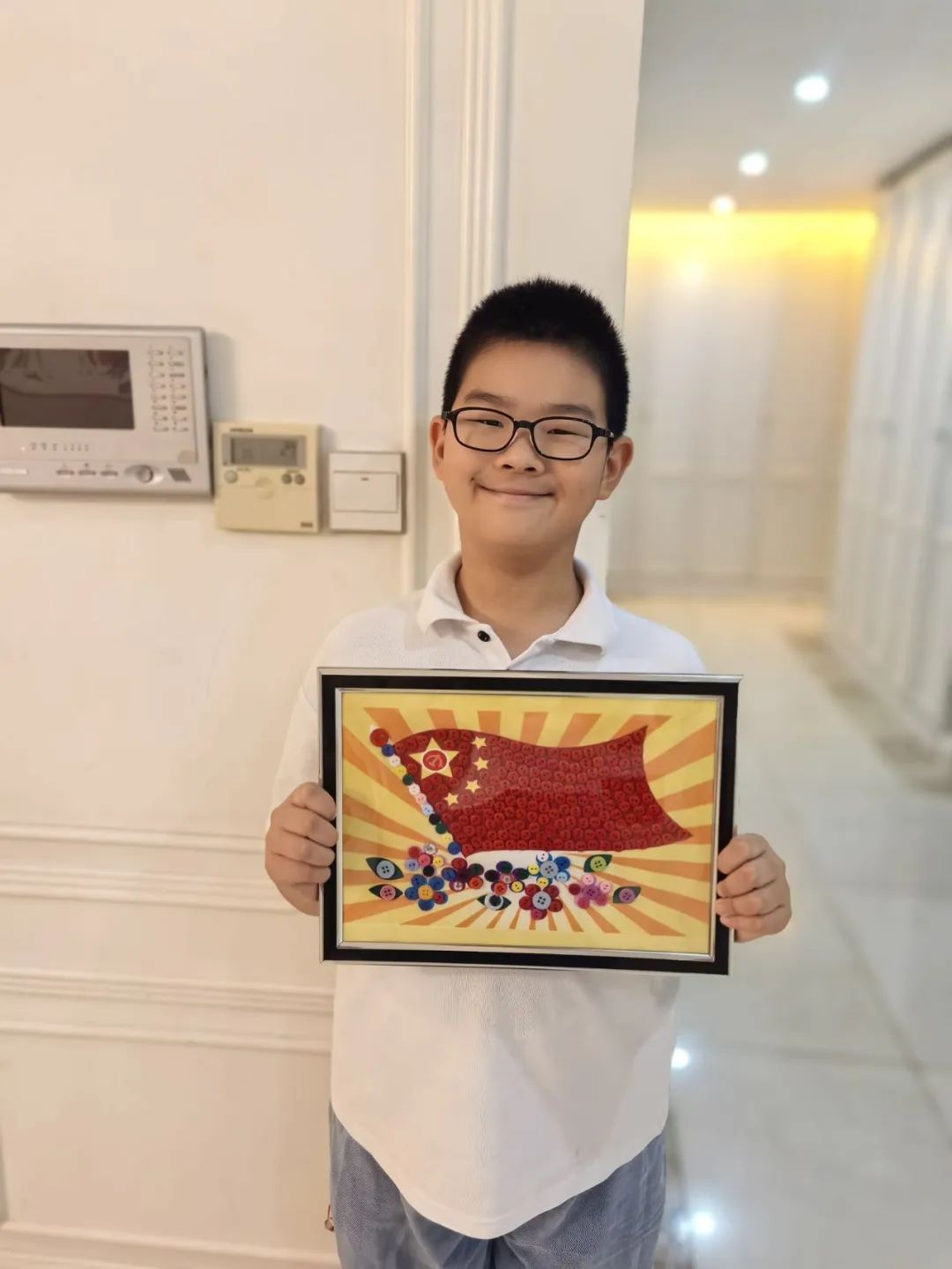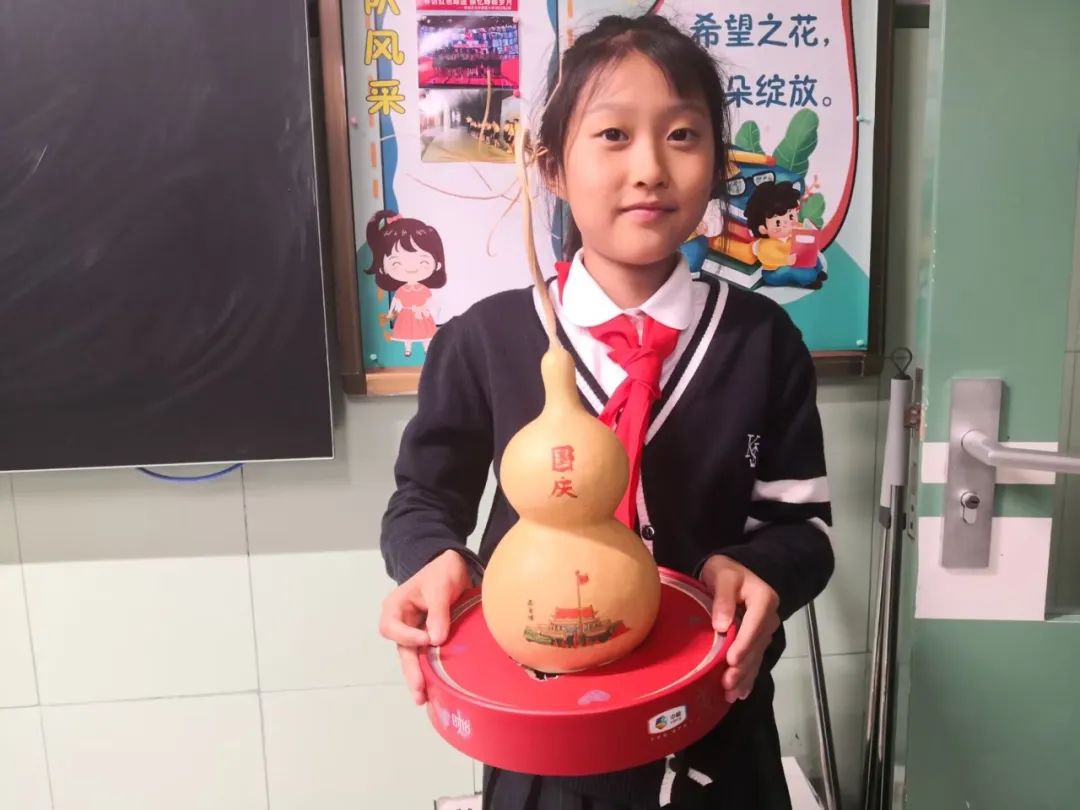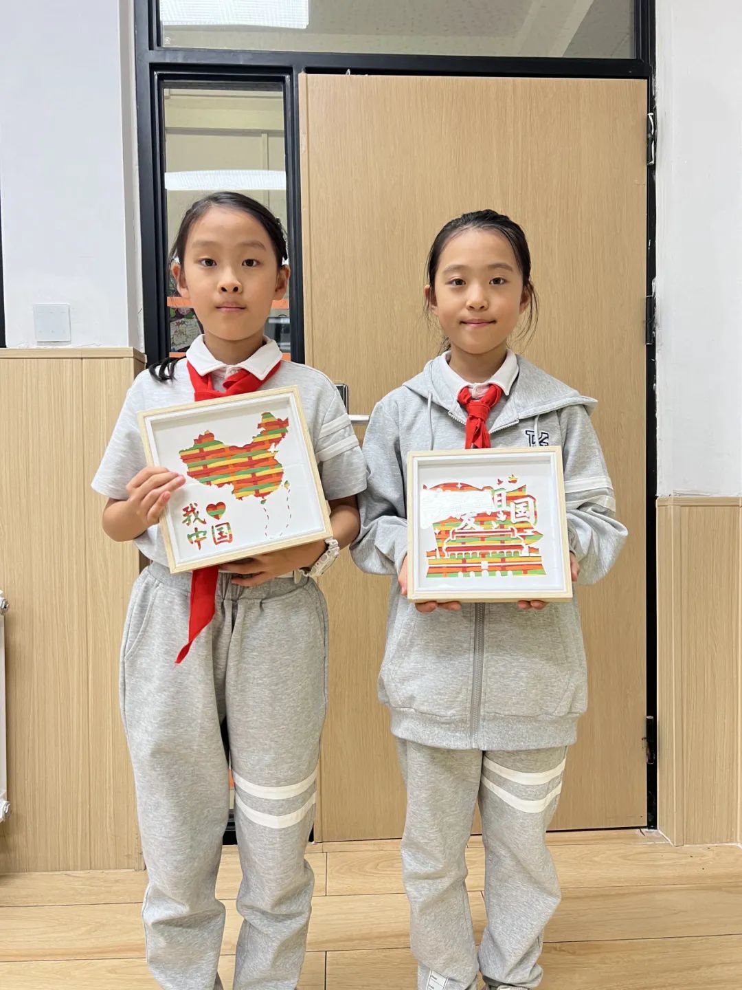 当非遗文化与国潮相遇,会奏出怎样的华美乐章?三四年级同学们的“国风国潮DIY”就能给你答案!他们利用废旧物品展开奇思妙想,用巧手制作出爱国手环、爱国展盘等手工作品,体验节日的喜悦,表达爱国之情。