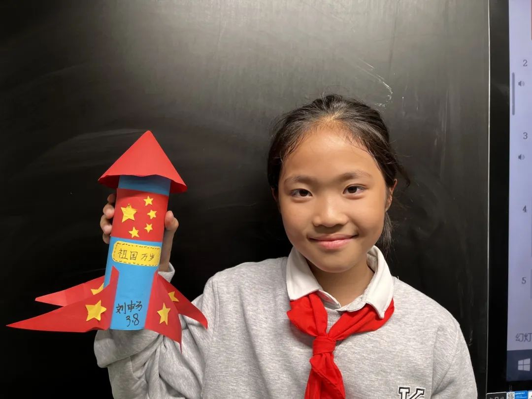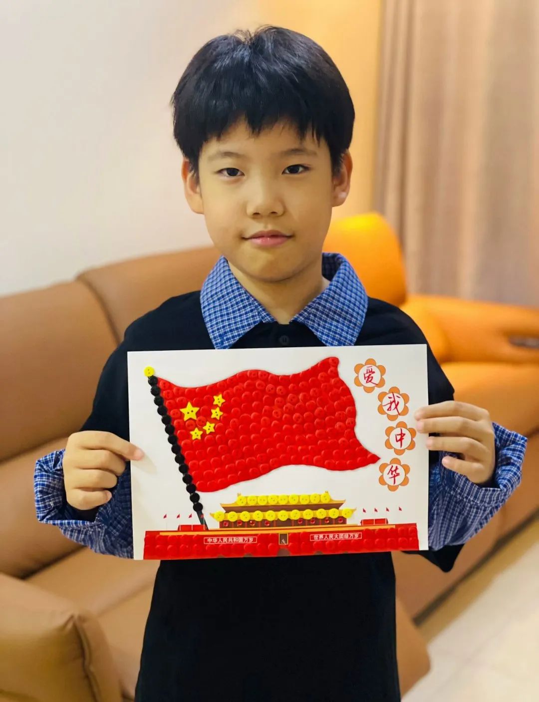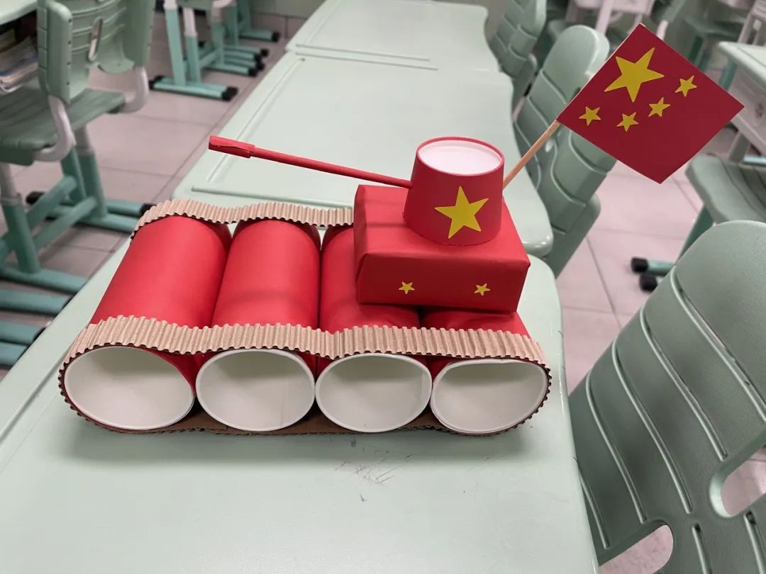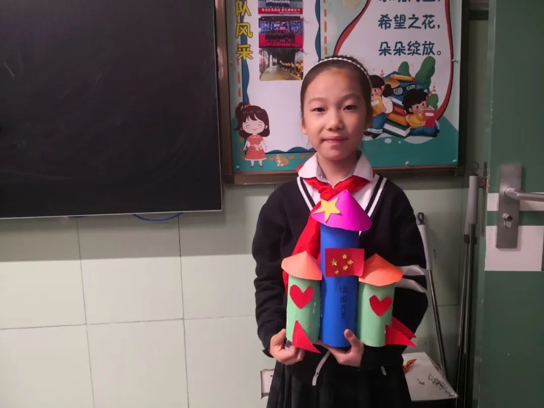 当非遗文化与国潮相遇,会奏出怎样的华美乐章?三四年级同学们的“国风国潮DIY”就能给你答案!他们利用废旧物品展开奇思妙想,用巧手制作出爱国手环、爱国展盘等手工作品,体验节日的喜悦,表达爱国之情。