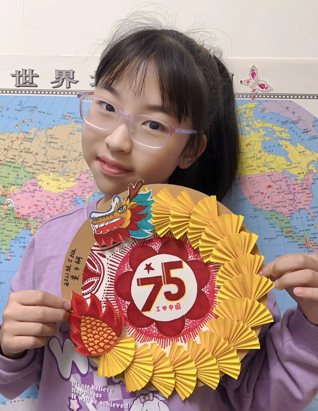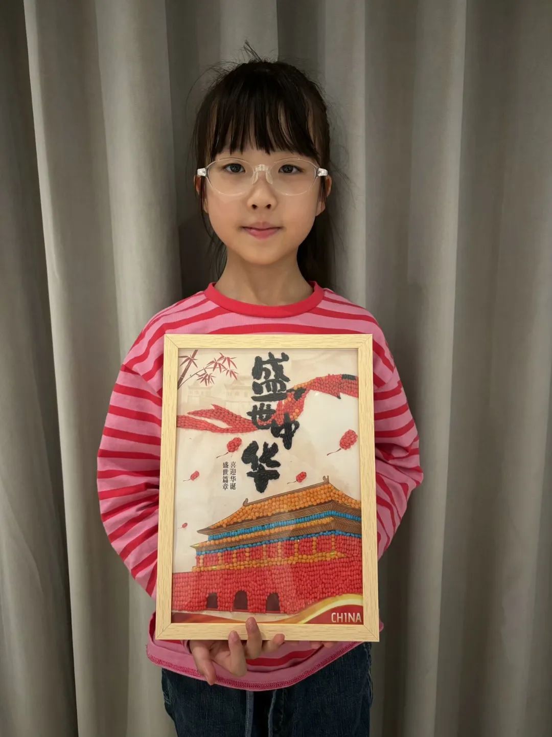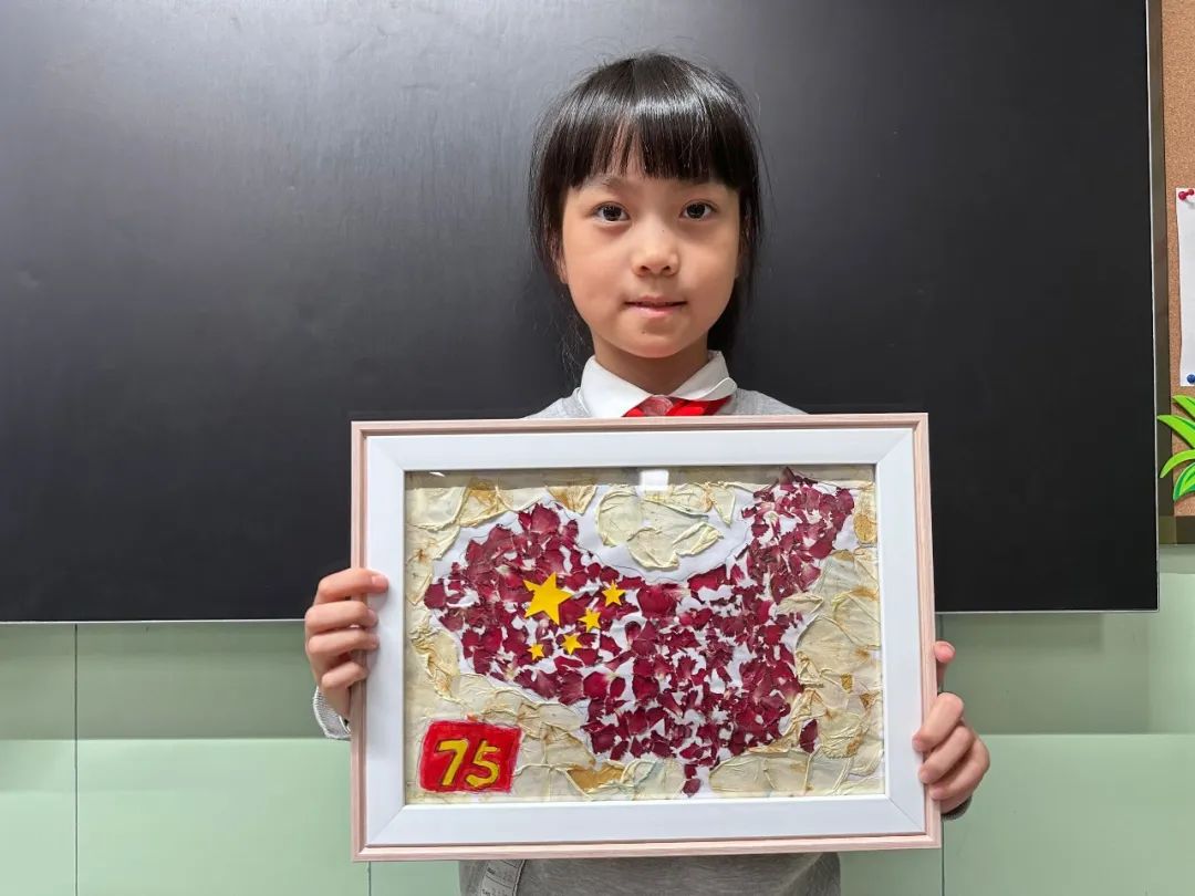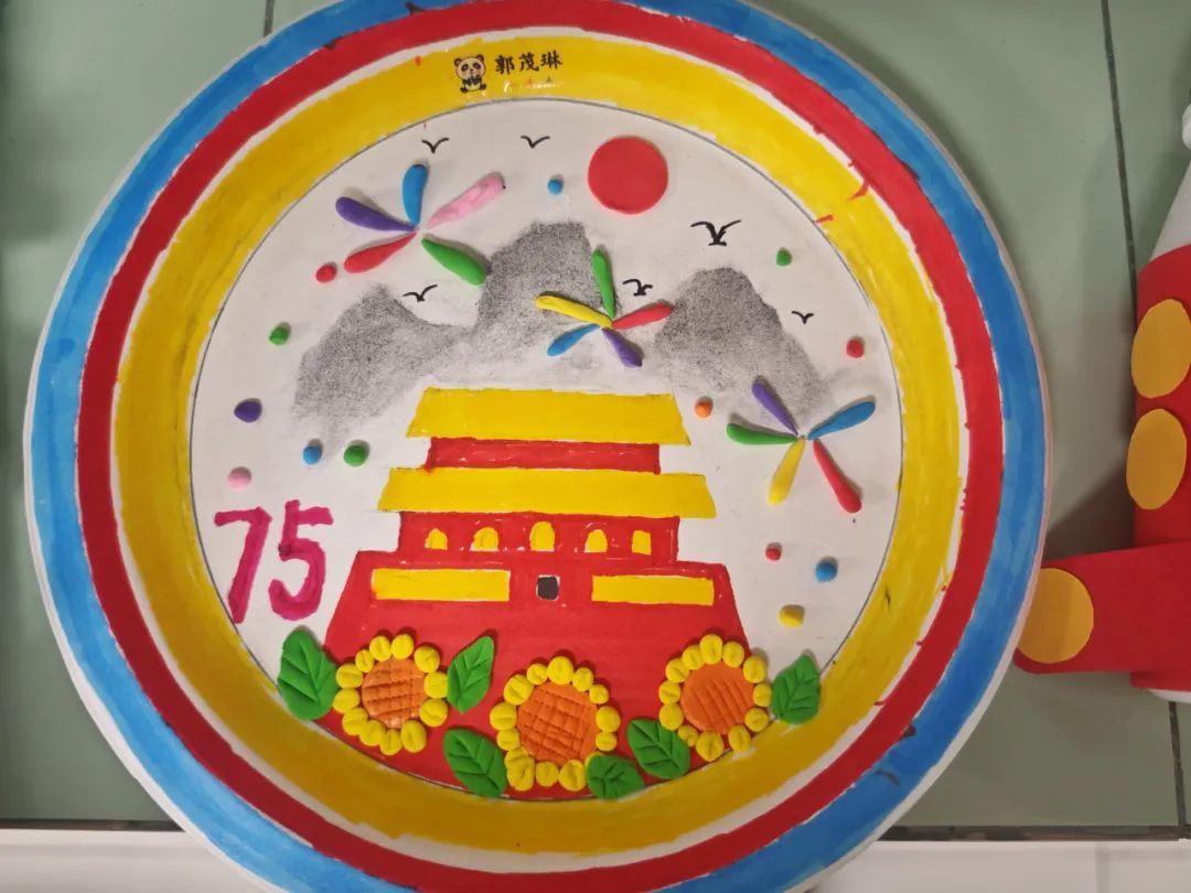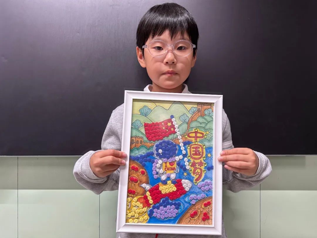 当非遗文化与国潮相遇,会奏出怎样的华美乐章?三四年级同学们的“国风国潮DIY”就能给你答案!他们利用废旧物品展开奇思妙想,用巧手制作出爱国手环、爱国展盘等手工作品,体验节日的喜悦,表达爱国之情。