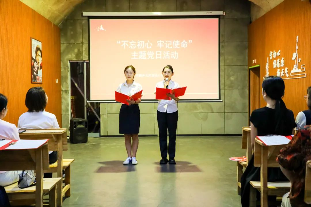 在庄严的党旗下,活动进入了最神圣的环节——重温入党誓词。在两位书记的带领下,全体党员肃然而立,面向鲜红的党旗,高举右拳,目光坚定,以铿锵有力的声音重温入党誓词。这不仅是简单的仪式,更是对初心使命的深刻回溯,对理想信念的再次淬炼,提醒着每一位党员时刻牢记身份,永葆政治本色,砥砺前行。