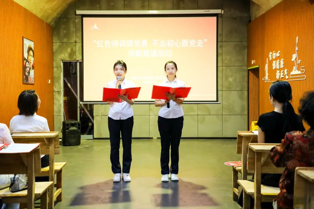 随后,我校党员教师代表与社区党员代表共同带来了精彩的红色诗词朗诵表演。他们或慷慨激昂,或深情款款,用声音的力量传递着对党的无限忠诚与热爱,对革命先辈的崇高敬意,以及对新时代美好生活的赞颂。