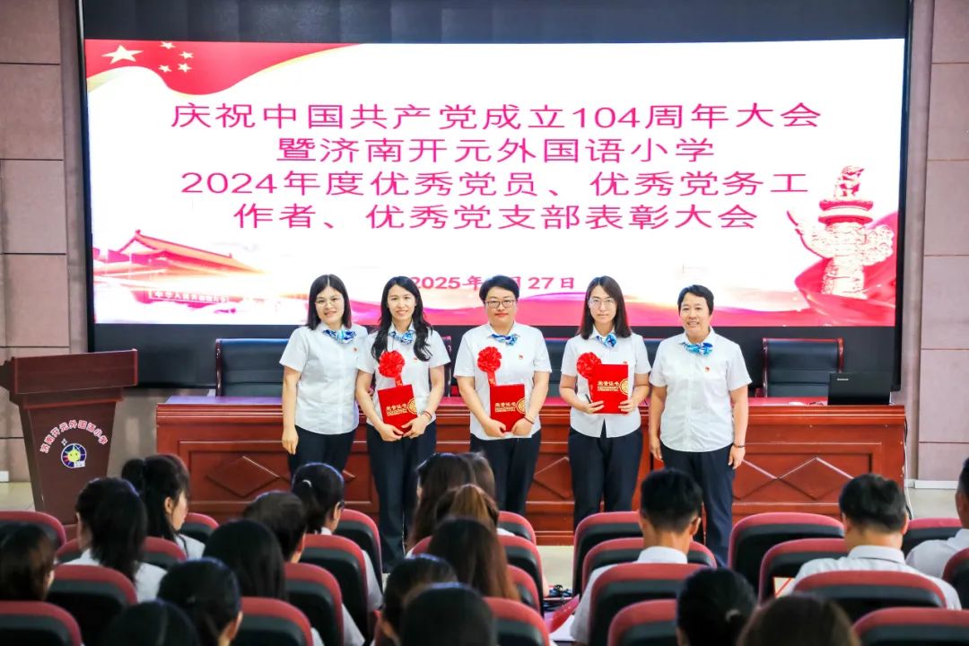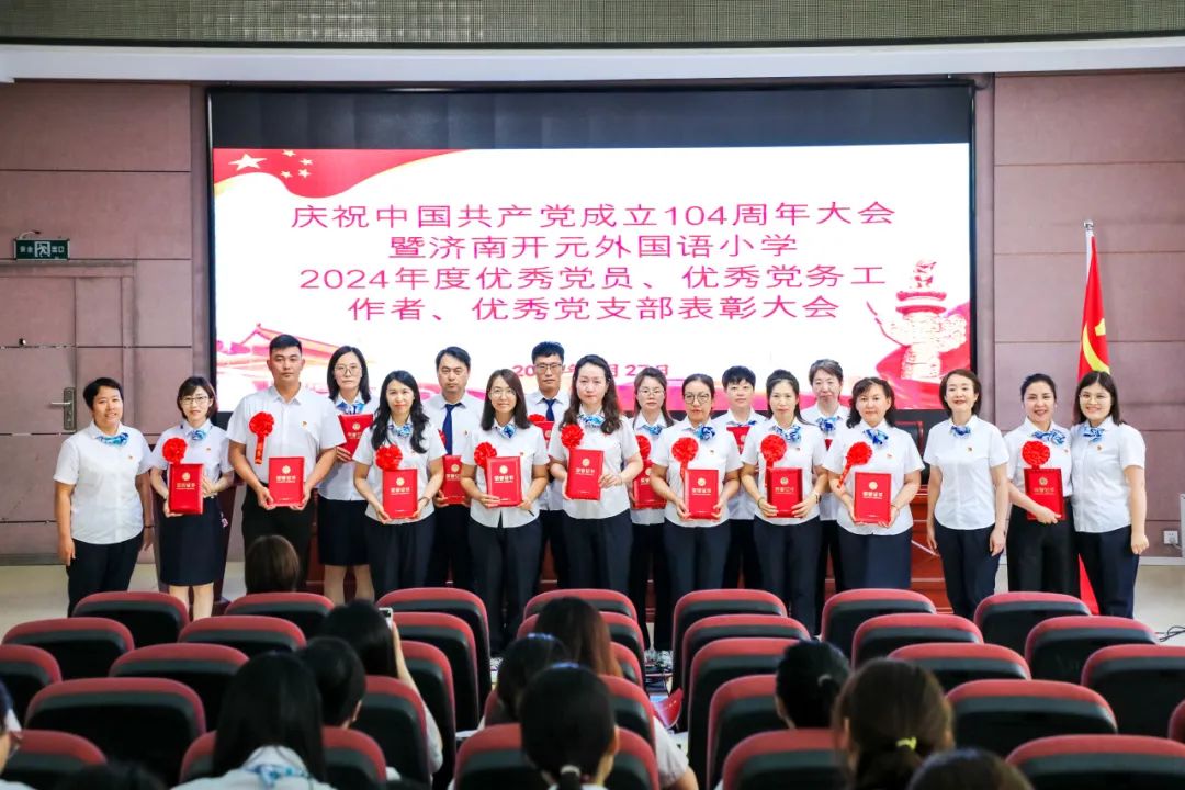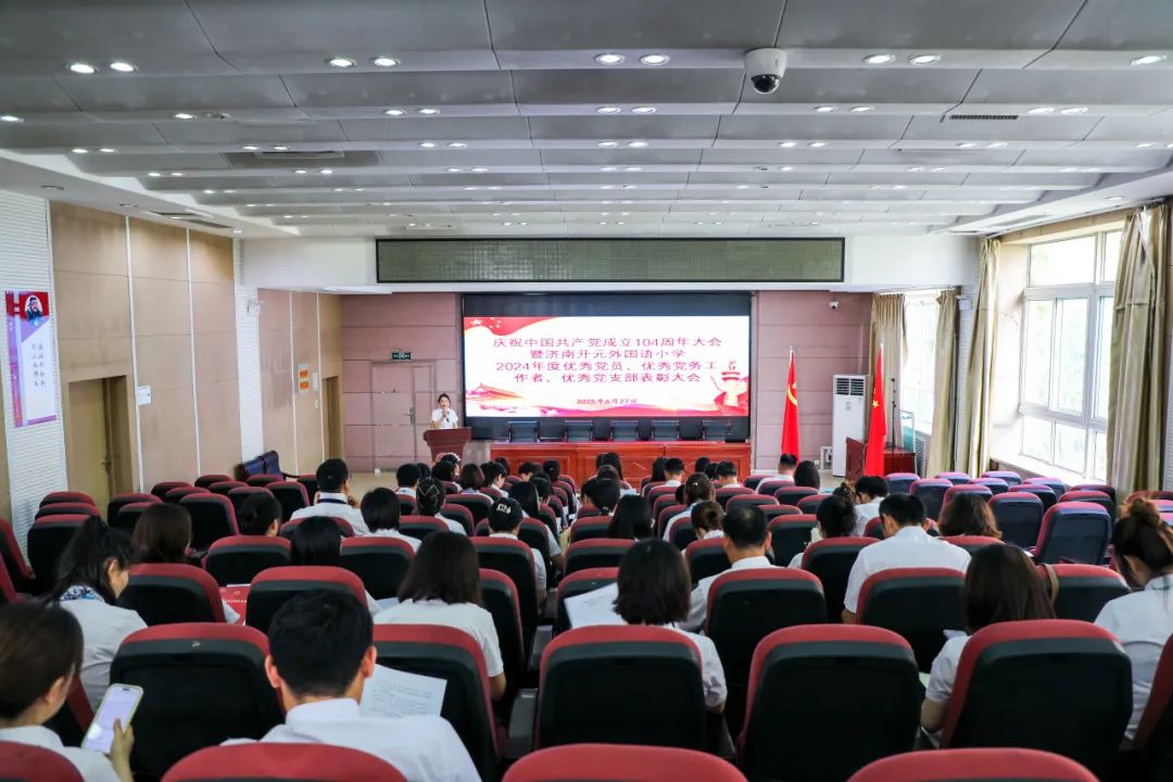 盛夏时节,党旗飘扬。为庆祝中国共产党成立104周年,回顾党的光辉历程,表彰先进典型,激励全体党员教师坚守育人初心,6月28日下午,济南开元外国语小学隆重召开“庆祝中国共产党成立104周年暨2024年度优秀党员、优秀党支部表彰大会”。会议由学校党总支宣传委员王沛主持。