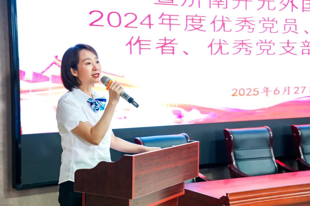 学校党总支书记侯颖宣读表彰决定,对过去一年在教育教学和党务工作中表现突出的优秀共产党员、优秀党务工作者及先进党支部予以表彰。党总支成员为获奖者颁发荣誉证书,现场掌声雷动,向先进典型致敬。