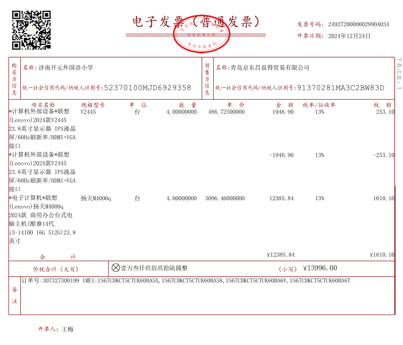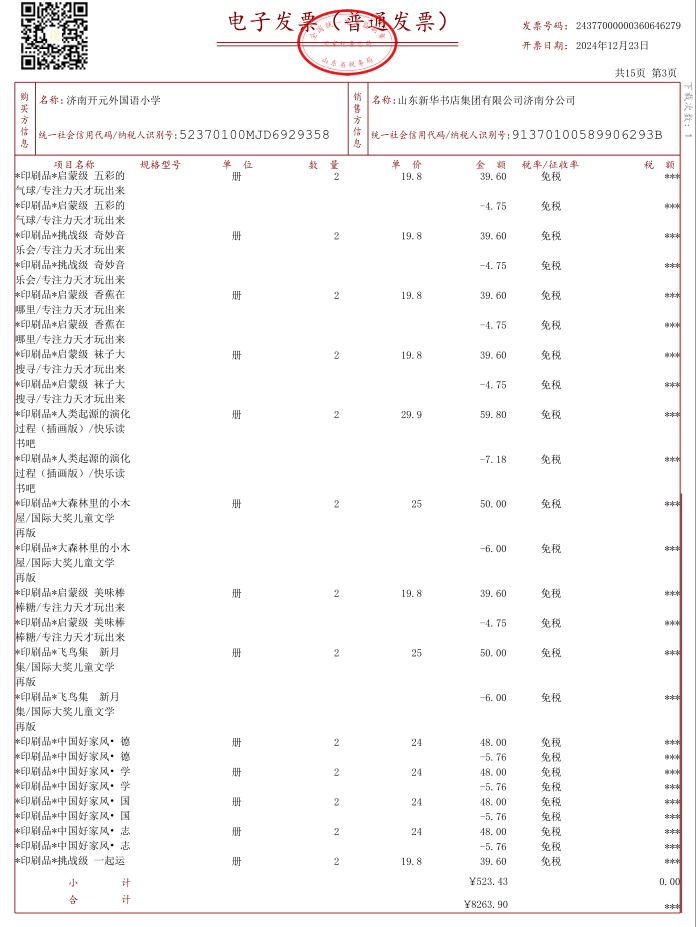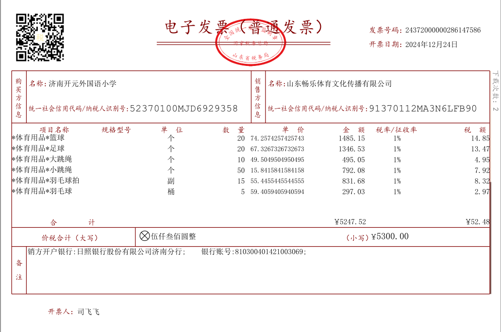 2024年12月27日为济南市锦绣川西南峪小学捐助电脑、图书、体育器材等物资共用善款30445.69元,剩余226775.51元,全部用于济南外国语学校教育集团“因爱而生 向善而行”慈善音乐会捐助项目。