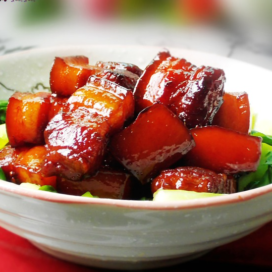 选用半肥半瘦五花肉切块,经独特烹饪,色泽红亮,肥而不腻,承载着深厚的文化历史底蕴。