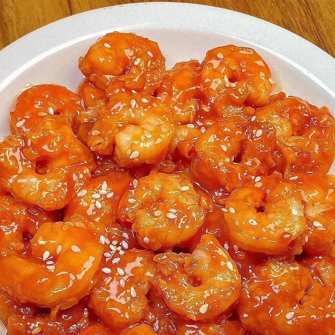 以鲜虾为原料,经油炸至金黄酥脆,再调制独特的糖醋汁,倒入炸好的虾球翻炒均匀。外皮微微酥脆,内里虾肉鲜嫩弹牙,既保留了虾的鲜美,又增添独特风味。