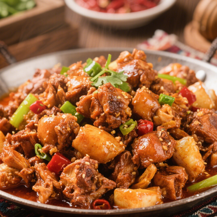 鲜嫩鸡肉搭配软糯土豆、爽脆青椒,经独特香料炒制,再以浓郁汤汁慢炖入味。一口下去,令人大呼过瘾,尽显新疆美食豪迈。