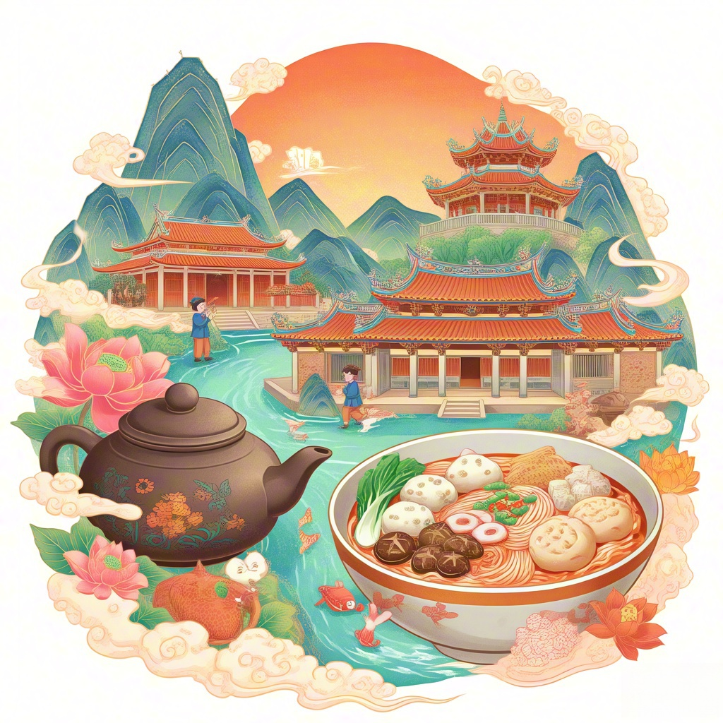 福建,山海交融的八闽福地,人文与自然相映生辉。客家人土楼如大地印章,凝聚家族智慧;泉州刺桐花见证海丝传奇,南音、木偶戏传承非遗匠心。舌尖盛宴更显厚重:佛跳墙包罗山海,沙县小吃烟火暖心,蚵仔煎酥香、鱼丸弹嫩,佐以岩茶醇香,尽显人间至味。