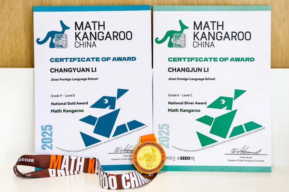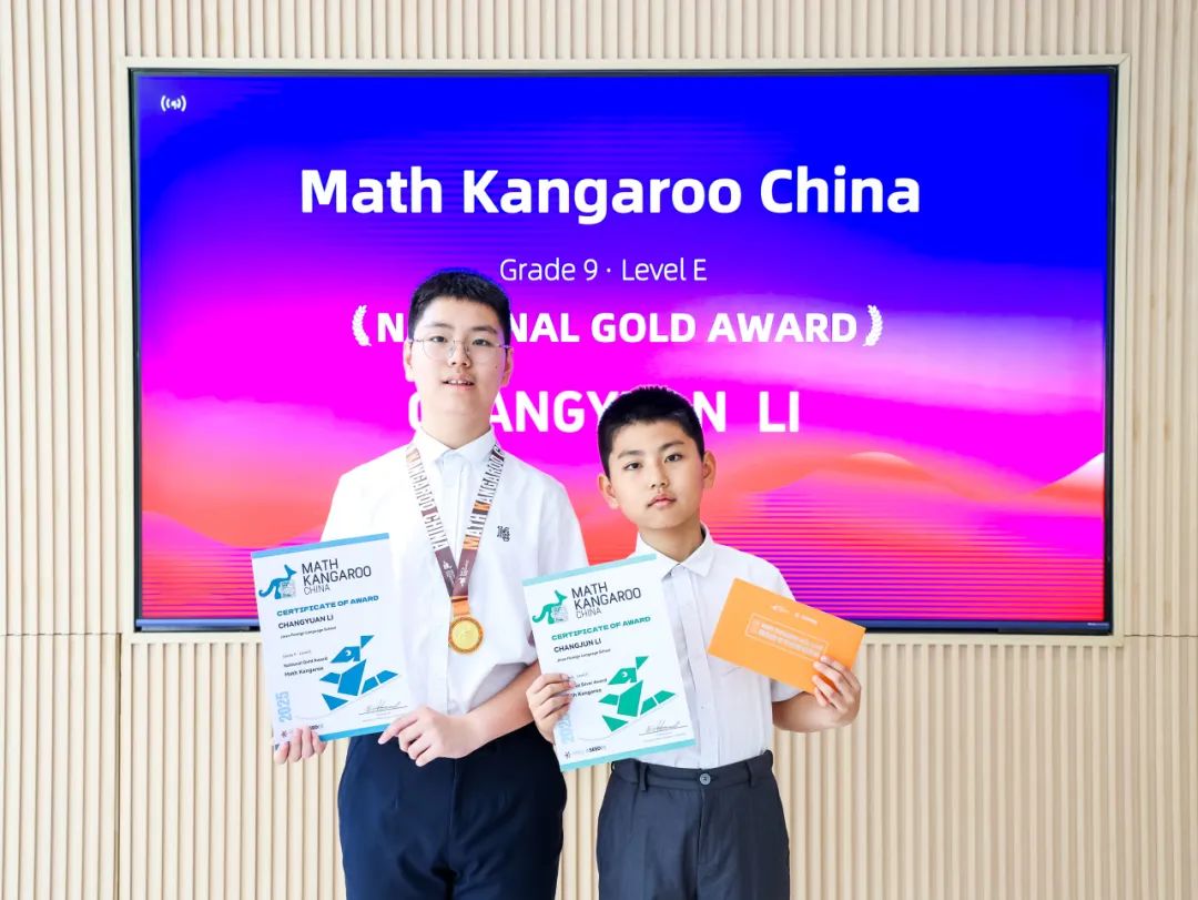 以跨级难度著称的国际袋鼠数学竞赛中,开元学子再创佳绩:四年级学生李长骏挑战 5-6 年级组(Level C),获得国家银奖;六年级学生李长源挺进 9-10 年级组(Level E),赢得国家金奖。