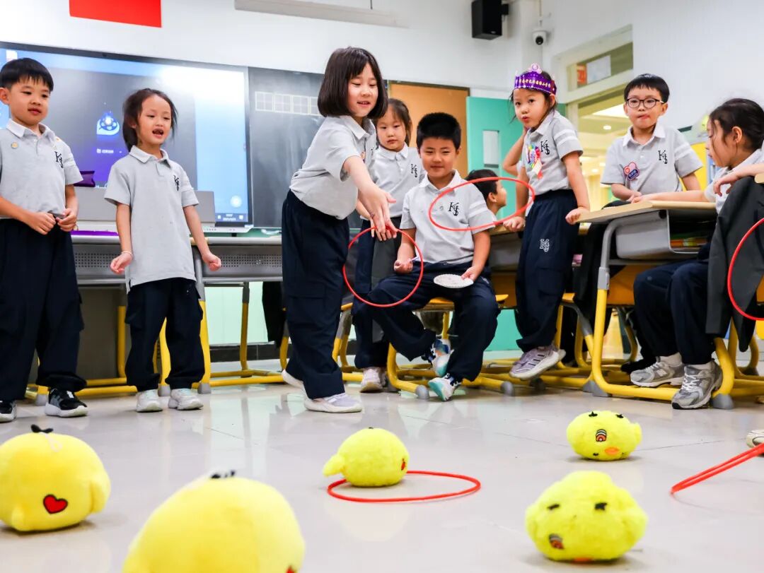 为了让快乐加倍,学校的吉祥物“小蜜蜂”活力登场!它们迈着可爱的步伐走进教室,时而与孩子击掌,时而送上萌萌的拥抱,瞬间点燃全场气氛,欢声笑语此起彼伏。