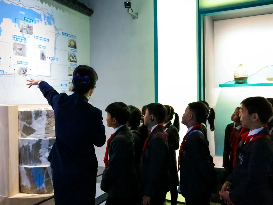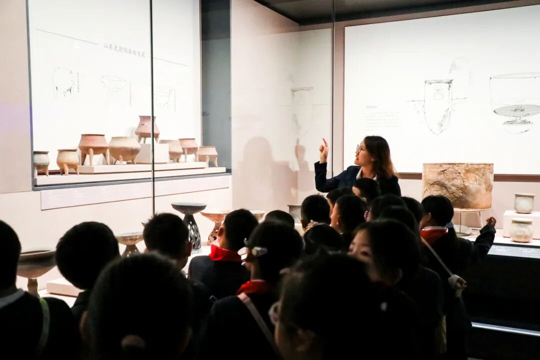 研学伊始,氛围感直接拉满!定制动画《文物救援令》中,红陶壶、青铜小钺的“求助”瞬间抓住了同学们的心。伴随着文物的“委托”,山东省博物馆讲解员王泽甲老师闪亮登场,用生动的故事揭秘红陶兽形壶“三足稳如泰山”的古老智慧,解读银雀山汉简中的兵法玄机,探索的种子在同学们心中悄然种下。