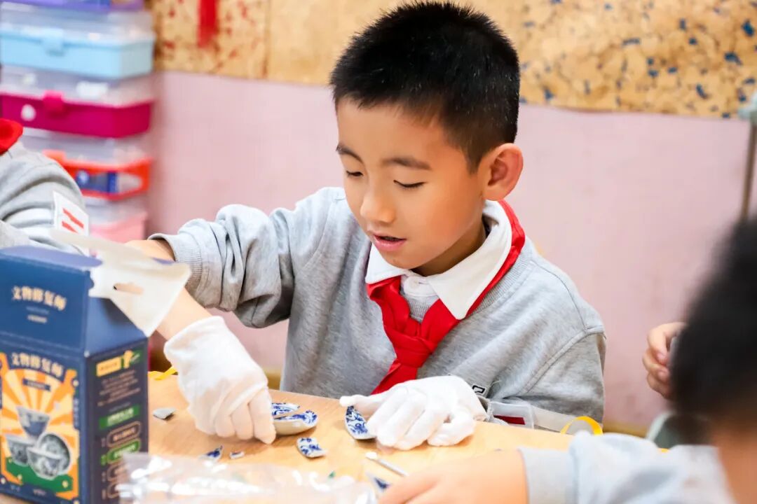 此外,同学们还通过一场文物修复体验,亲身感受了文物修复的严谨。在专业老师指导下,同学们小心翼翼地拼合瓷片,于方寸之间感受历史的厚重与温度,让文明传承的使命感在心中悄然生根。