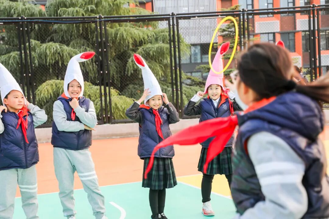 三年级的生日会是一场真正的游园奇遇。在宽阔的操场上,“小蜜蜂”人偶带领孩子们穿梭于各个游戏站点。手持游园票的小寿星们,胸前的生日牌熠熠生辉,那是自由探索的凭证,也是童年独有的权利。