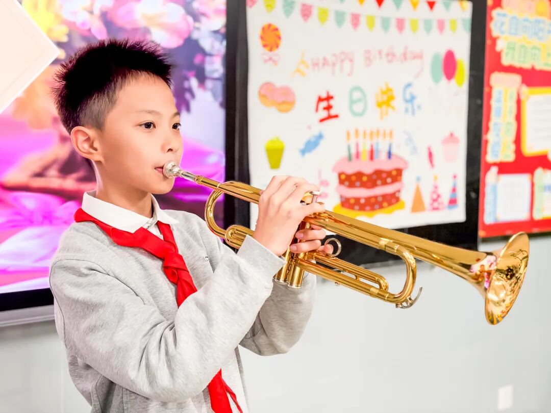 四五六年级的孩子们,用不同的方式诠释成长。有的在舞台上以才艺点亮自信,歌声舞影中尽显风采;有的将生日会与升旗仪式相融,在《禾下乘凉梦》的影片中体会家国情怀,更以“祝福使者”的身份,将感恩与温暖传递校园。