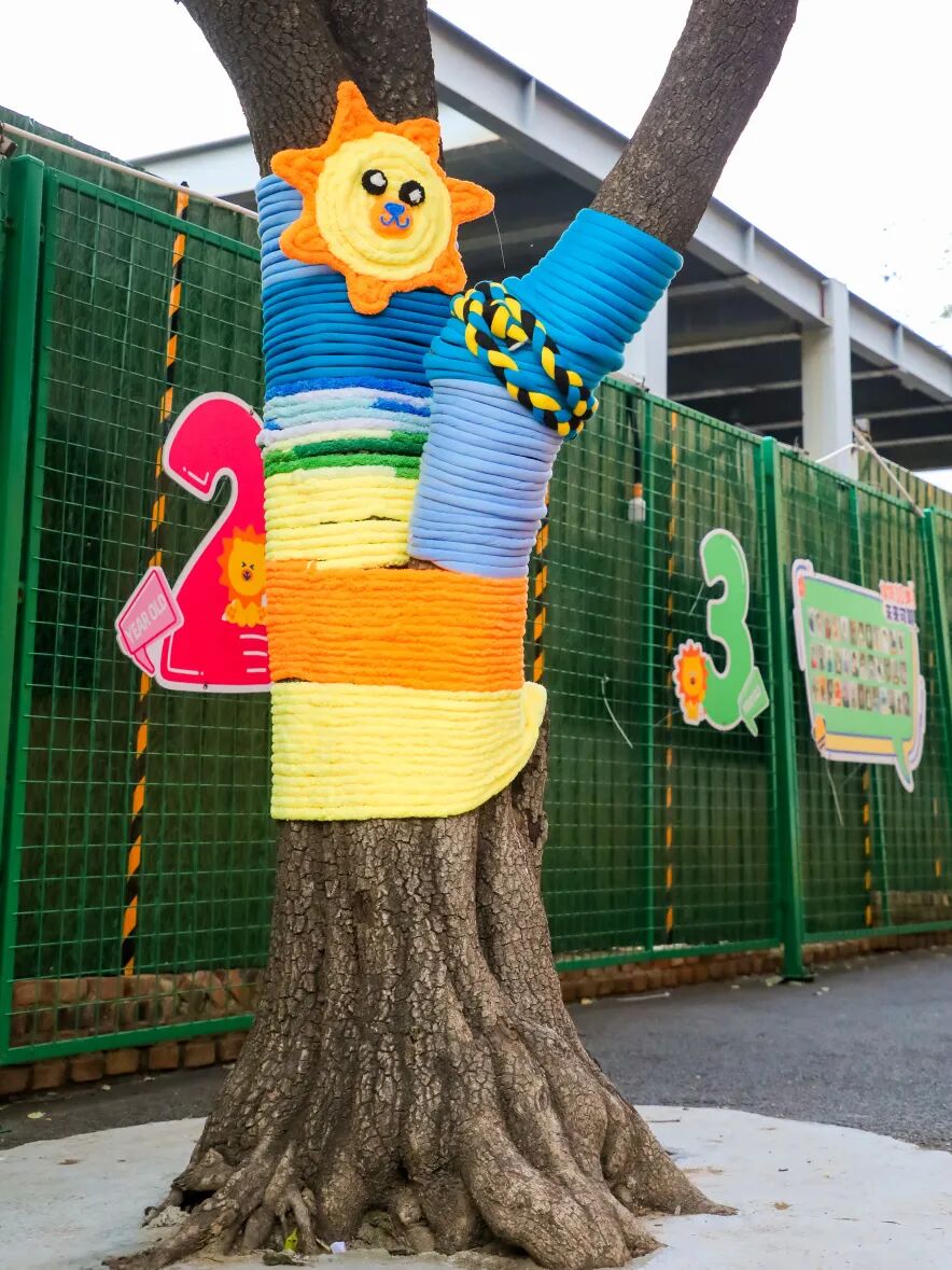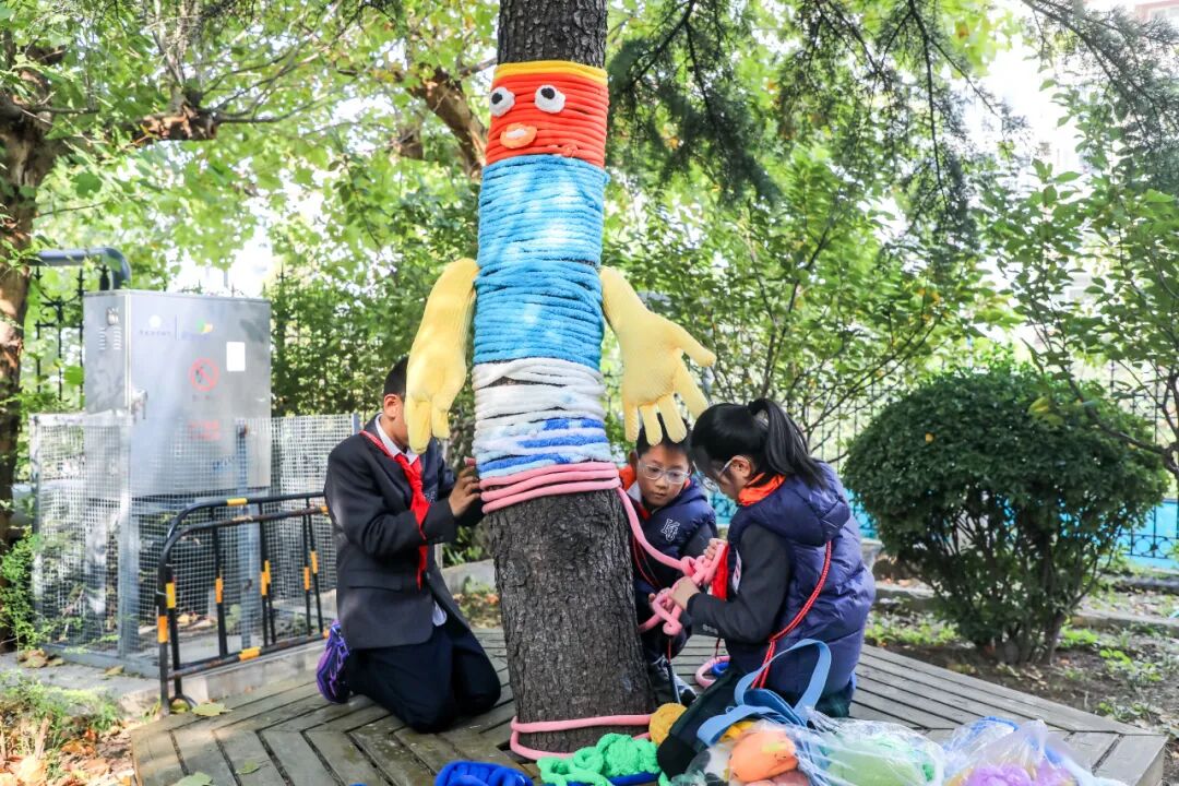 收到!济南开元外国语小学的“小艺术家”和“编织小能手”们出动,用一场超酷的 “秋日树艺” 行动,给了整个校园一个超大的惊喜!快来看,我们的树朋友,已经穿上全世界最独一无二的“多巴胺”毛衣啦!