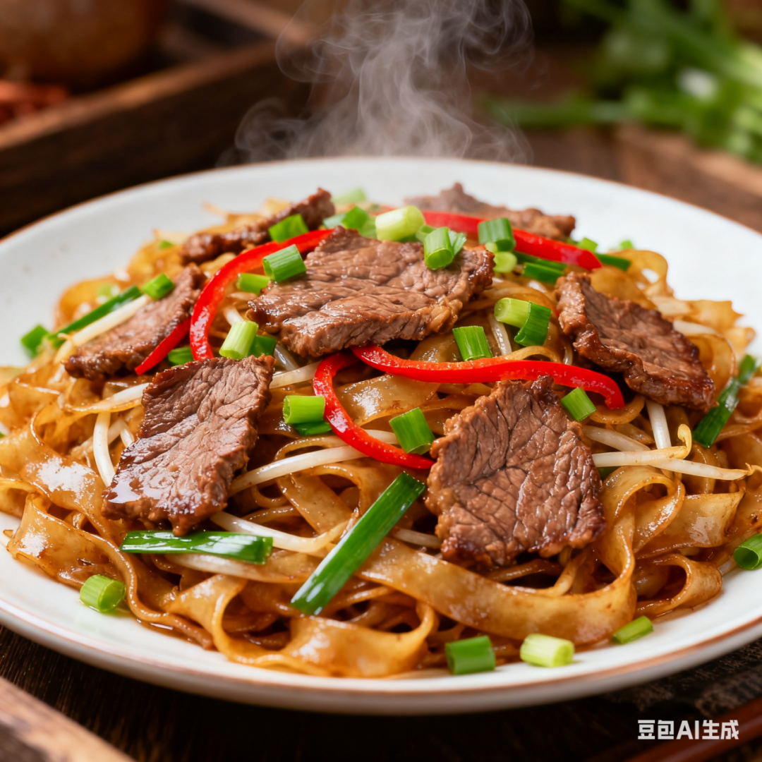 以嫩滑牛肉与爽滑河粉为主料。猛火快炒,牛肉鲜嫩多汁,河粉筋道有嚼劲,香气四溢,口感丰富,每一口都尽显浓郁的岭南风味,令人回味无穷。