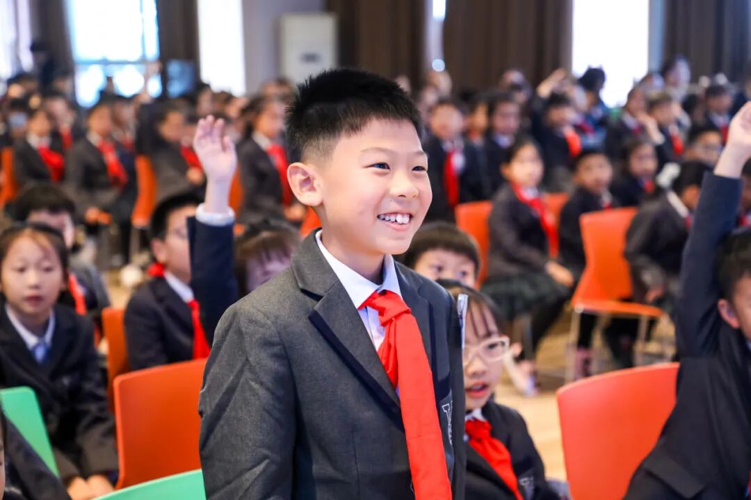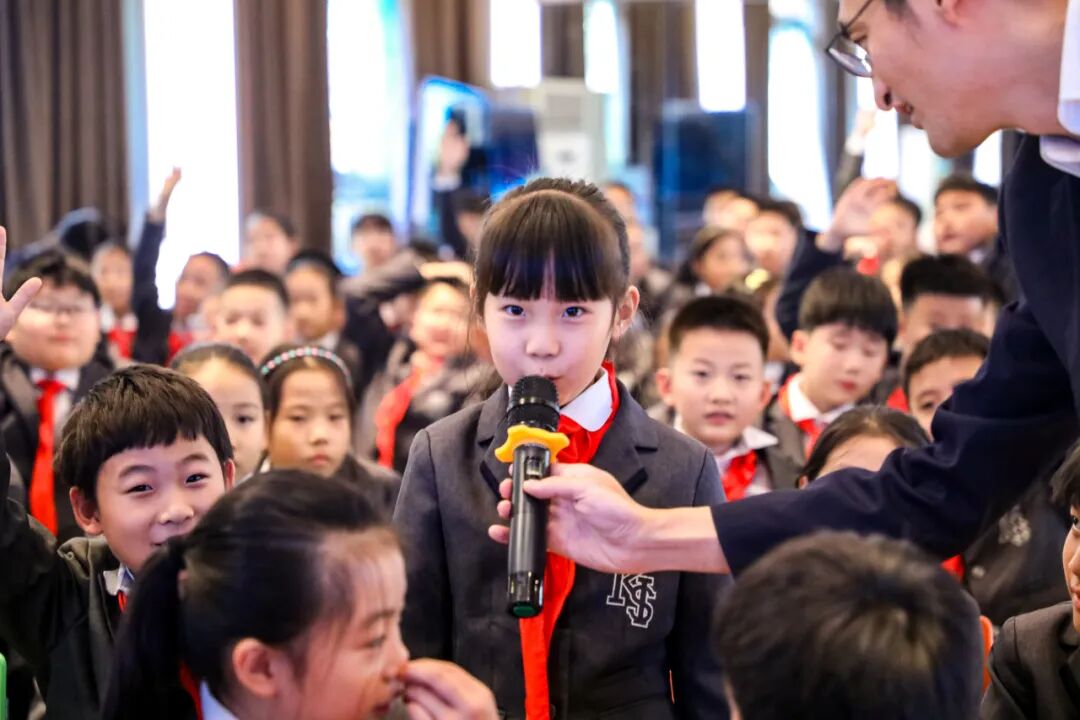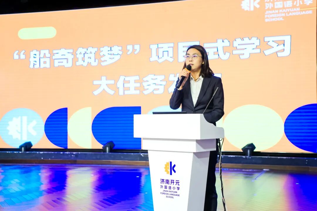 科学老师陈荣荣率先发布核心任务:“齐心协力造大船,携手共航向未来!”瞬间,同学们的欢呼声响彻会场,点燃了对即将启程的学习之旅的无限期待。