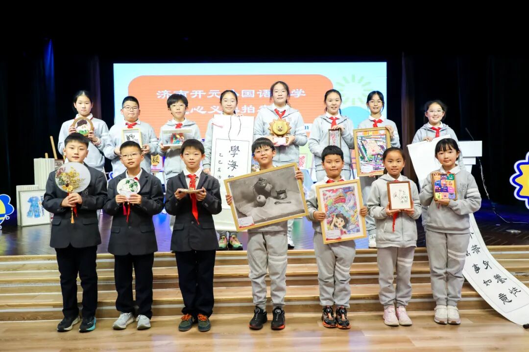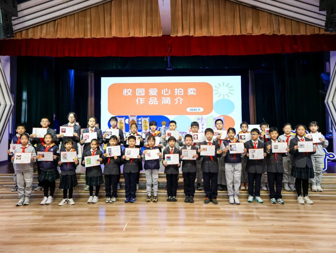 我们特别邀请了每一位拍品的“原创小艺术家”亲临现场。他们自豪地走上舞台,展示自己的手工作品与书画精品,并从校领导手中接过了象征荣誉的 “爱心捐赠收藏证书” 和可爱的学校吉祥物。这一刻,掌声不仅为作品响起,更为这份乐于分享的爱心而鸣。