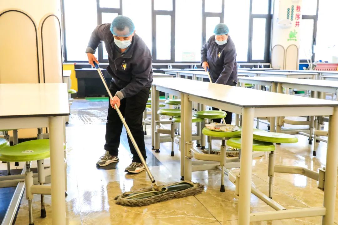 别担心,食堂的师傅们早在正月初十就开始忙碌啦!从厨房到用餐区,每一个角落都不放过,餐桌餐椅被仔细消杀,锅碗瓢盆也被擦得锃亮。