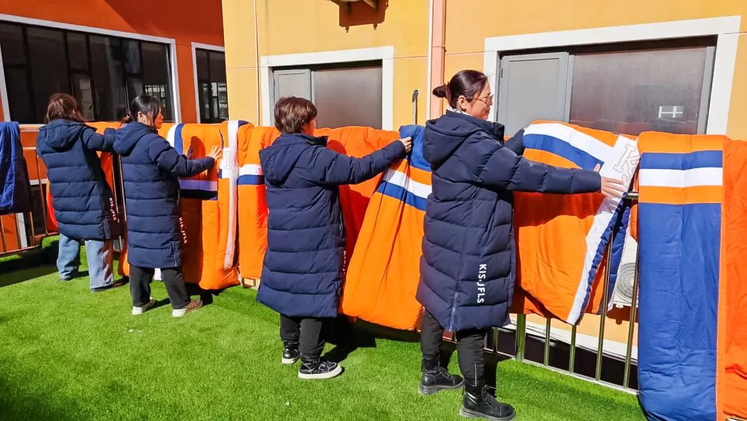 宿舍是同学们在学校里的“小家”,为了让“小家”更加温暖舒适,假期的时候,副班老师就把同学们的被褥都摆放到了宿舍里阳光能够照射到的位置,正月初十一返工第一天,一床床被褥又被副班老师晾晒到了阳光最充足的地方,不仅蓬松柔软,还填满了温暖的味道。
