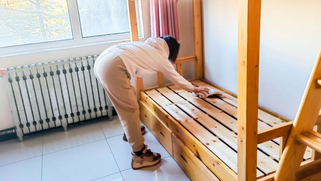 打扫房间、清洁用具、整理床铺……副班老师认真做好每一项细节工作,只为让同学们住得安心、睡得舒心!