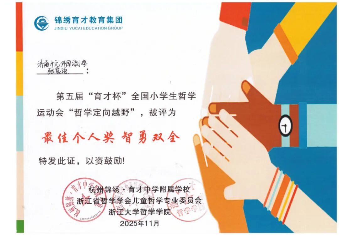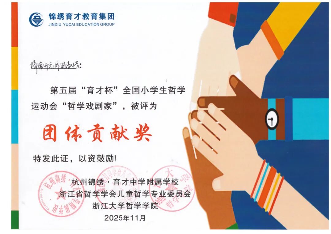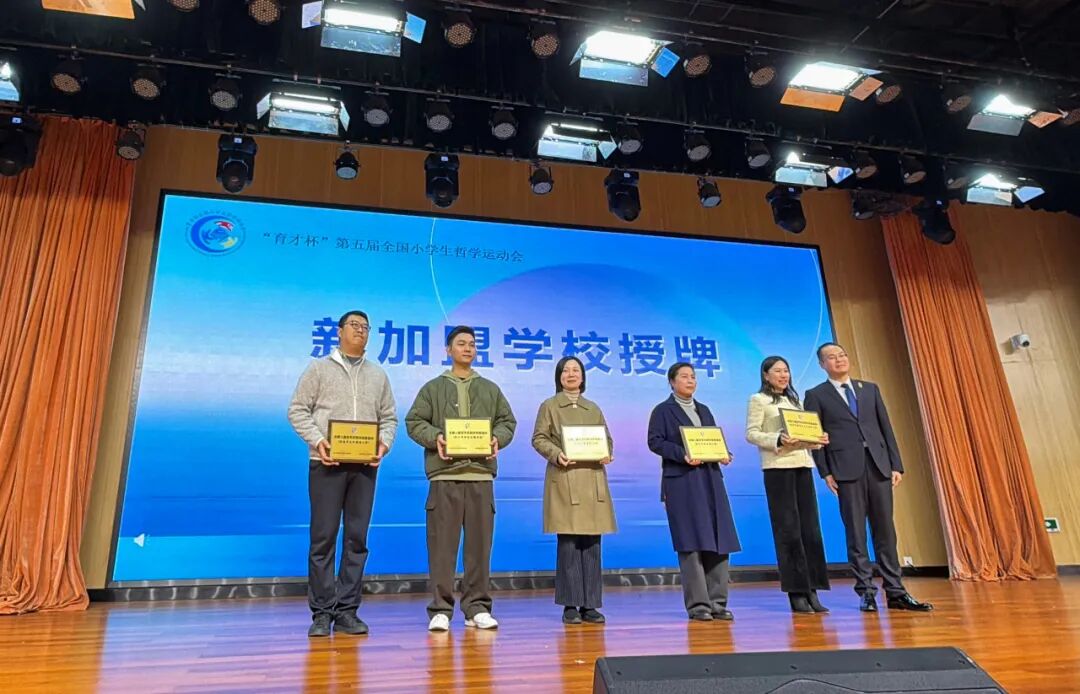 2025年11月20日,“育才杯”第五届全国小学生哲学运动会在杭州隆重举行。本届赛事专家云集,特邀来自浙江大学、杭州师范大学、厦门大学、山西大学等高校的十余位哲学与教育界知名学者组成权威评委团,吸引了来自两岸三地近50所优秀小学同场竞技。多家主流教育媒体及新媒体平台对赛事进行了广泛关注与报道,我校代表队的卓越表现更是成为焦点。