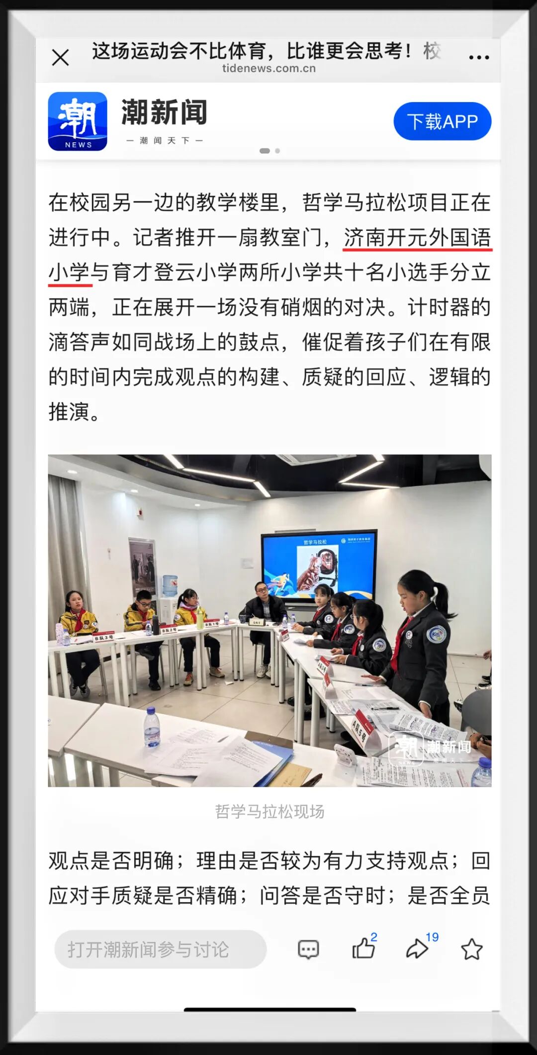 未来已来。当科技重塑世界,思考力正成为照亮未来的光。济南开元外国语小学愿以此次赛事为新的起点,继续探索教育戏剧与儿童哲学的深度融合,让每一个孩子真正成为思想的主人,以思考的力量,走向更远的远方。