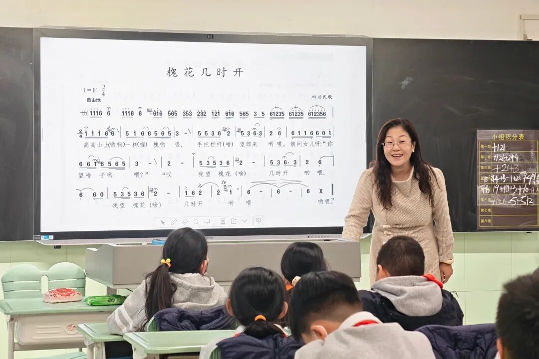 活动现场气氛热烈,师生互动积极。湖北民歌《龙船调》凭借鲜明的“西曲”遗风与热情洋溢的曲调点燃课堂,孩子们与老师亲切对唱、踊跃应和,全身心沉浸其中,成为活动亮点。