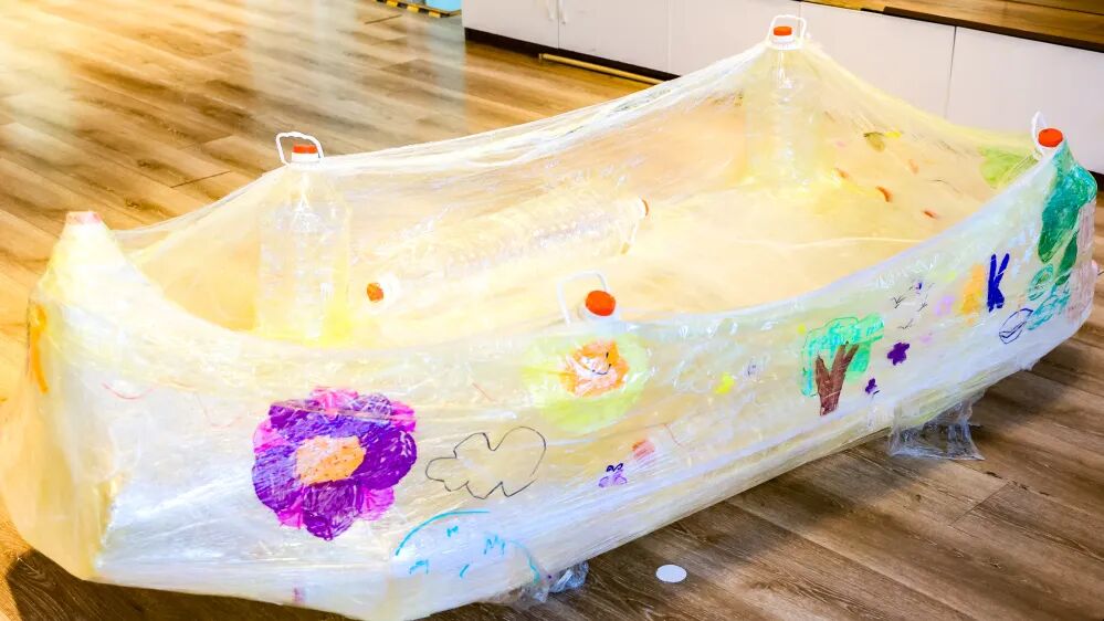 一次次试错、一遍遍优化,原本零散的材料渐渐变成了一艘艘模样可爱、构思精巧的小船。而在这个过程中,孩子们也悄悄成长:争执过后学会了倾听他人意见,遇到难题时懂得了分工合作,更明白了 “团结” 不是一句口号,而是一起为了同一个目标努力的力量。