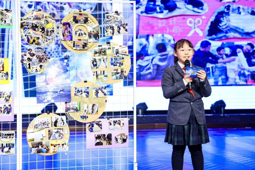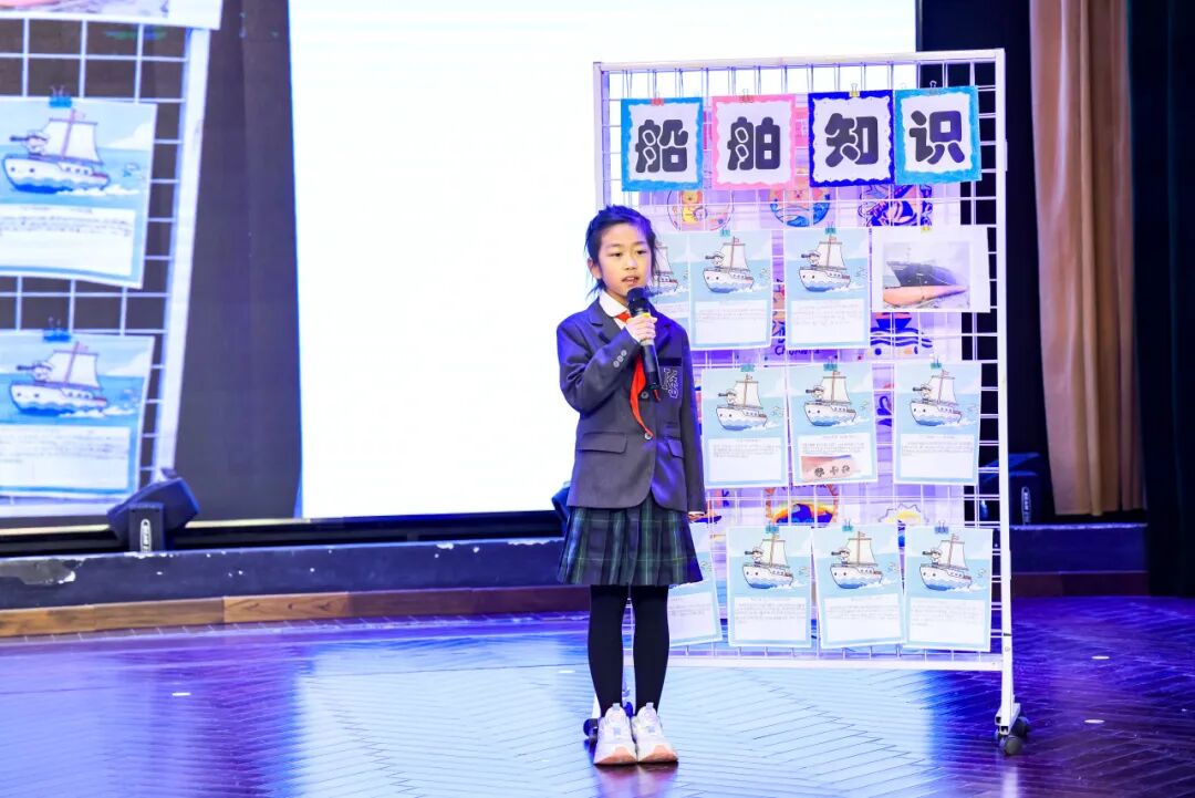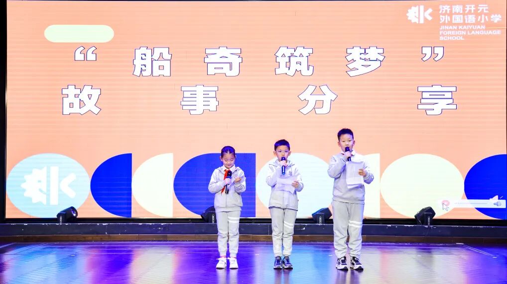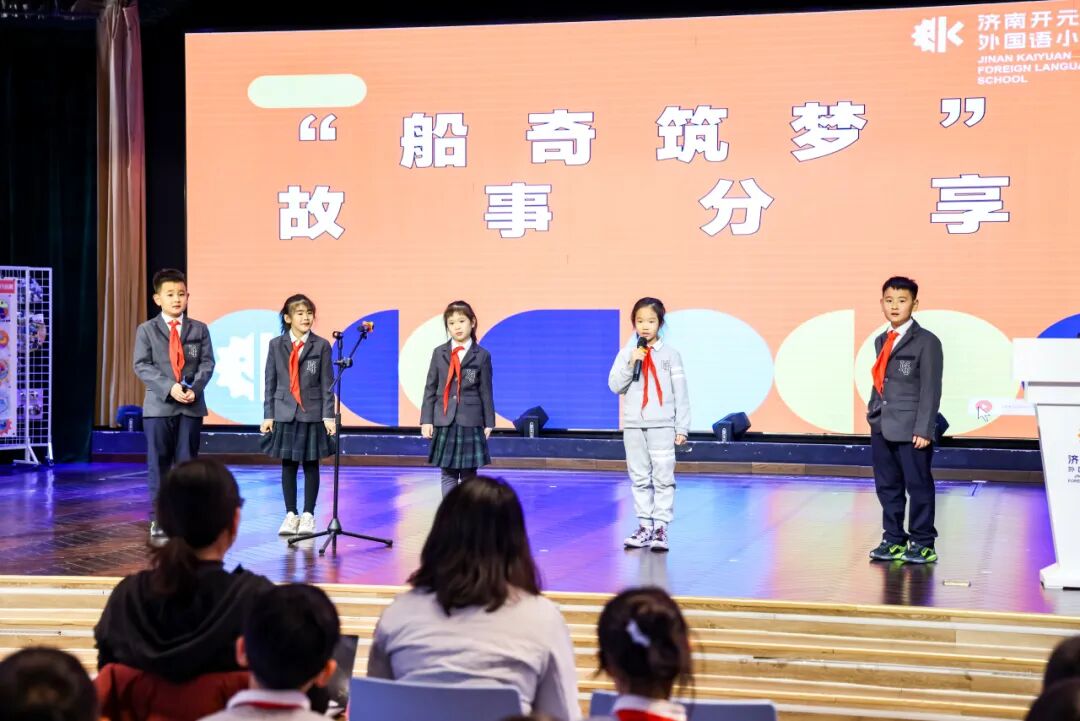 与此同时,开元剧场里的故事分享与答辩也格外精彩:各班代表走上舞台,用中英文讲起项目中的小故事 ——“我们的船第一次下水就沉了,后来加了浮力板才成功”“画图时大家意见不统一,最后投票选了最实用的方案”,稚嫩的声音里满是骄傲;面对评委 “为什么这么设计船身” 的提问,孩子们条理清晰地回答,展现出超出预期的逻辑思维与实践积累。