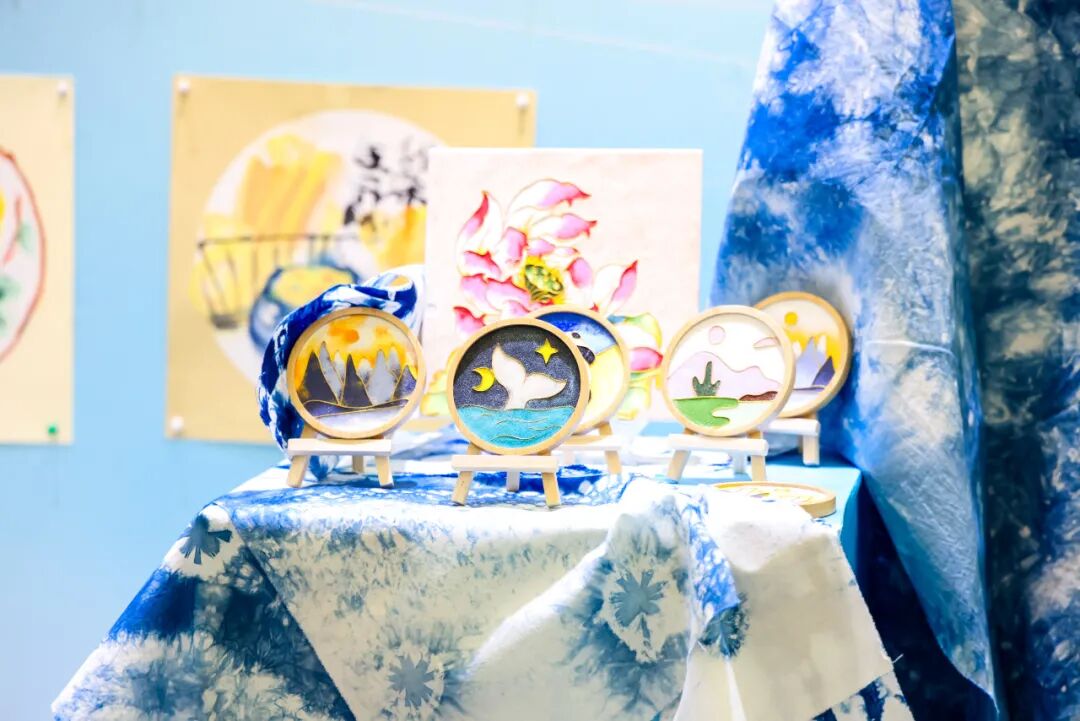 一幕幕温馨的画面,一次次深入的沟通,构成了本次开放日最珍贵的记忆。在教学楼大厅,我们精心呈现了选修课作品展——泉水扎染、掐丝珐琅、济南皮影、面塑、剪纸、衍纸,这些与走廊两侧孩子们的创意作品、英语文化展示栏交相辉映,共同编织成一道绚丽的校园风景线,令每一位驻足欣赏的家长由衷赞叹。