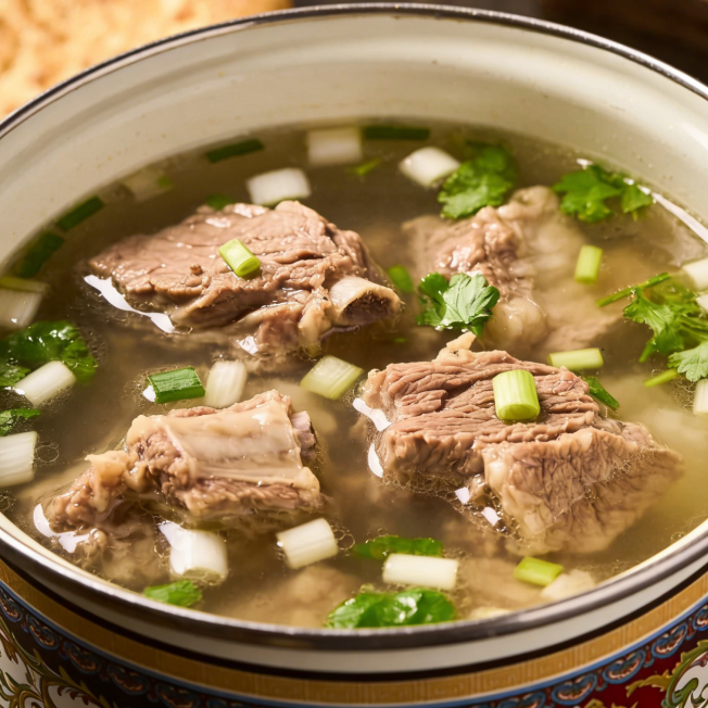 清炖羊肉的袖珍版,内放羊肉、胡萝卜等食材,仅用盐调味,原汁原味,肉嫩汤鲜。它既是新疆特色美食,也是冬季滋补佳品,温暖又满足,承载着新疆人民的饮食智慧与热情好客。