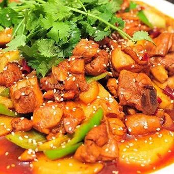 以鸡肉、土豆为主料,配以青红椒经炒炖而成。其鸡肉爽滑麻辣,土豆软糯甜润,汤汁浓郁。作为新疆十大经典名菜,它已走向全国,成为新疆饮食文化的代表之一。