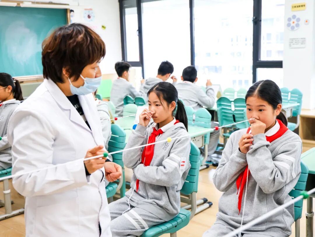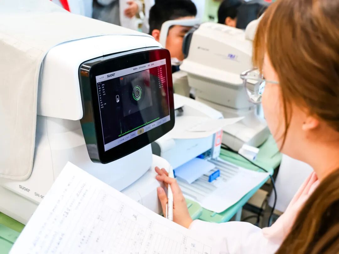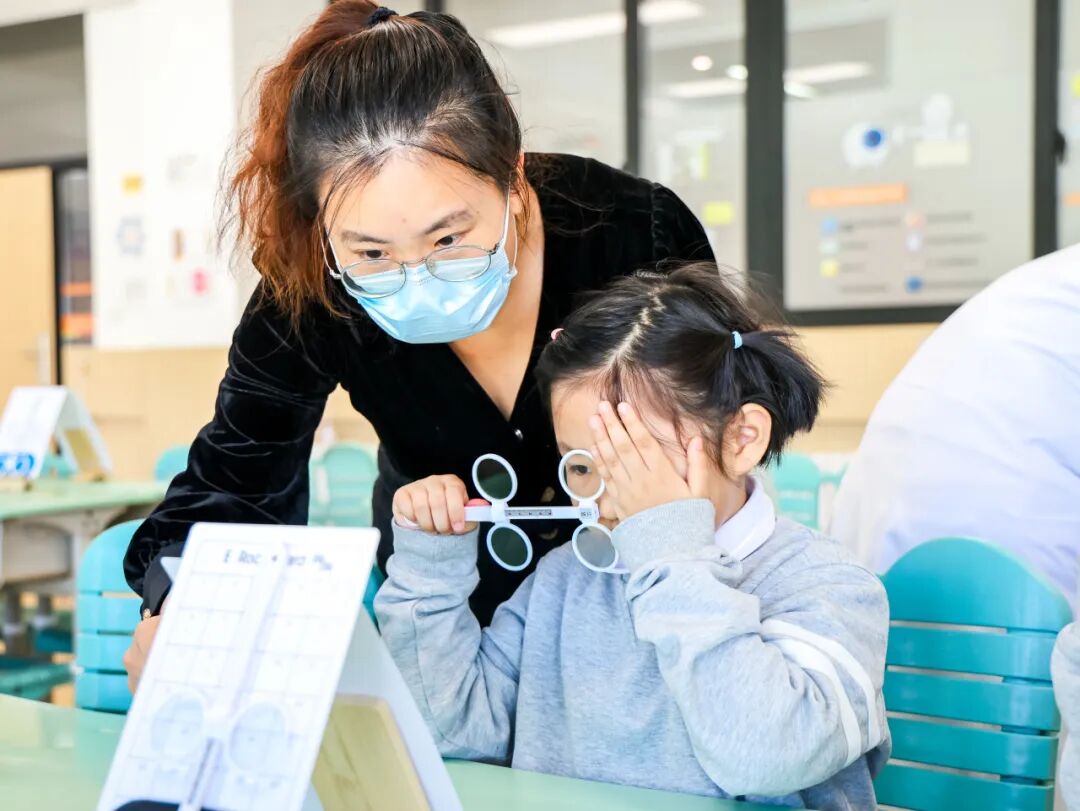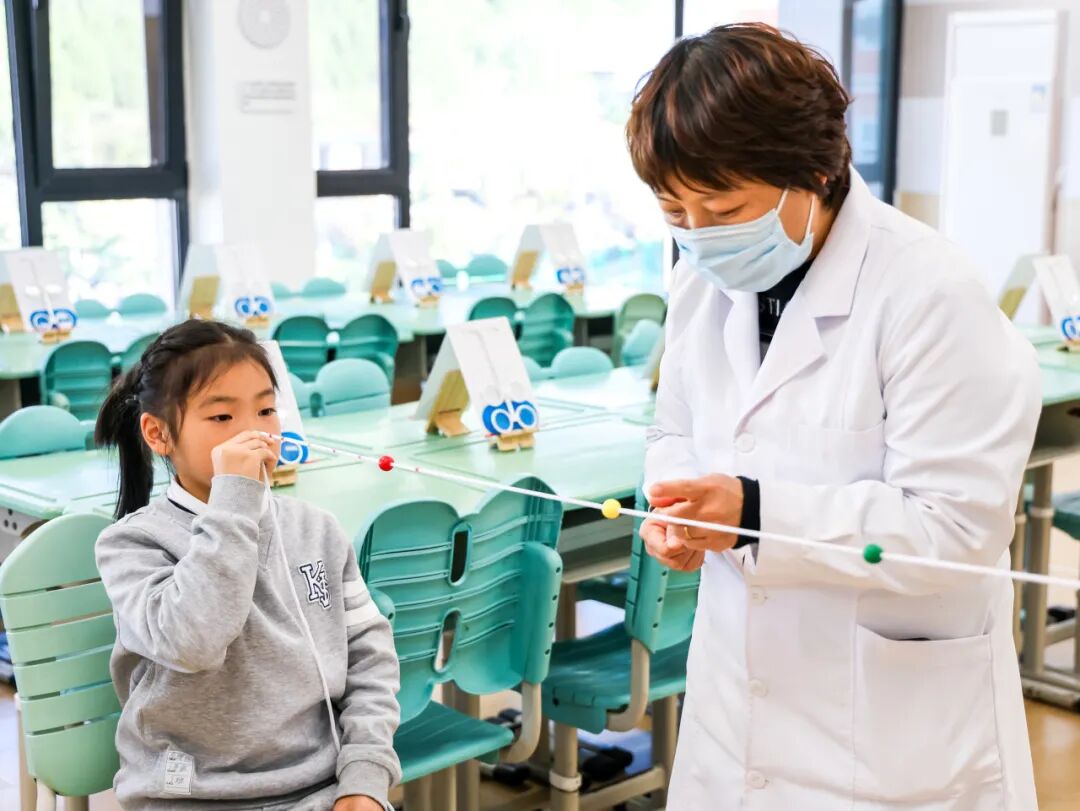 学期伊始,学校已完成全体学生的视力普查。除了常规视力检测,更引入眼轴长度测量,依托科学数据有效区分真性近视、假性近视临界状态,并筛选出可通过视觉训练改善的学生,建立“视力健康重点关注名单”。