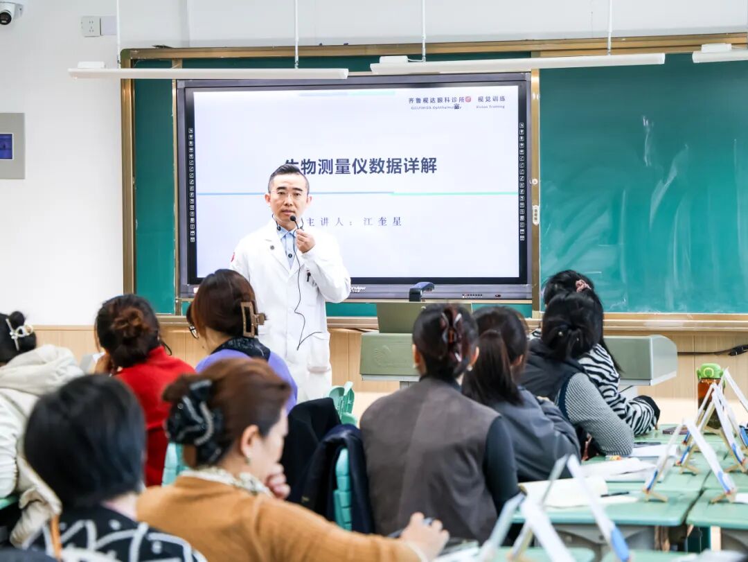 学校通过“走出去+请进来”双路径强化师资防控能力:安排校医外出参加专业视训培训,夯实指导与数据解读基础;邀请眼科专家进校园开展两场专项培训——为副班主任团队解读检测数据,指导识别视力异常信号、掌握课堂干预技巧;面向全体师生开展科普讲座,普及护眼知识。