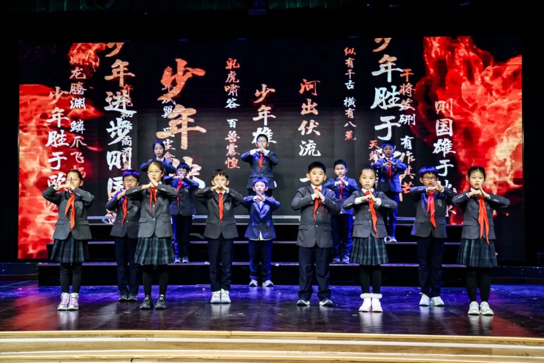 风采展示环节更是精彩不断:二班、三班、六班、七班娓娓道来成语故事;八班《孺子可教》情景剧演得活灵活现;四班成语接龙妙语连珠;一班《鹧鸪》、五班《少年中国说》则将成语唱成歌,让经典在旋律中焕发新生。