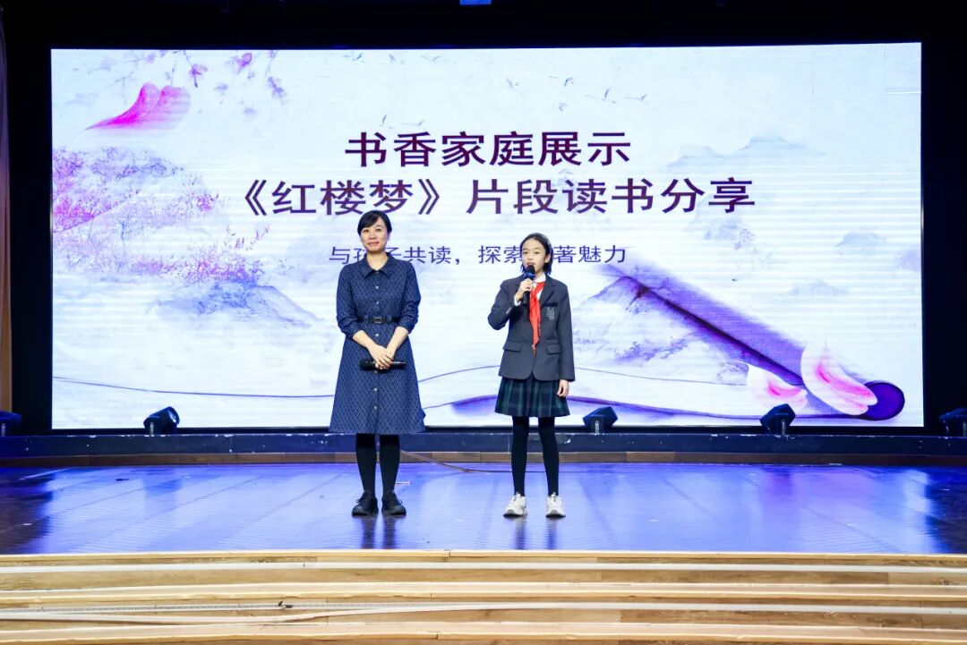 活动还特别设置了“书香家庭”展示环节,六年级四班李浩颖同学与妈妈的亲子共读,温情满满,展现了家校共育的动人画面。整场活动以雅言传承文明,以经典润泽成长,生动诠释了学校“以文化人、以美育人”的育人理念。
