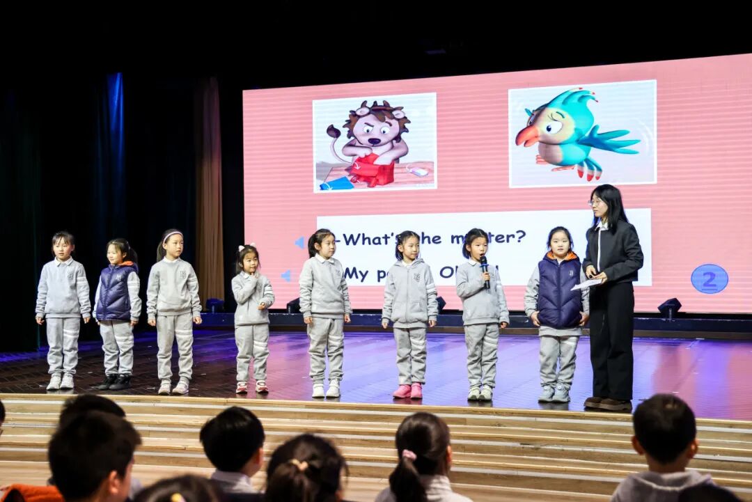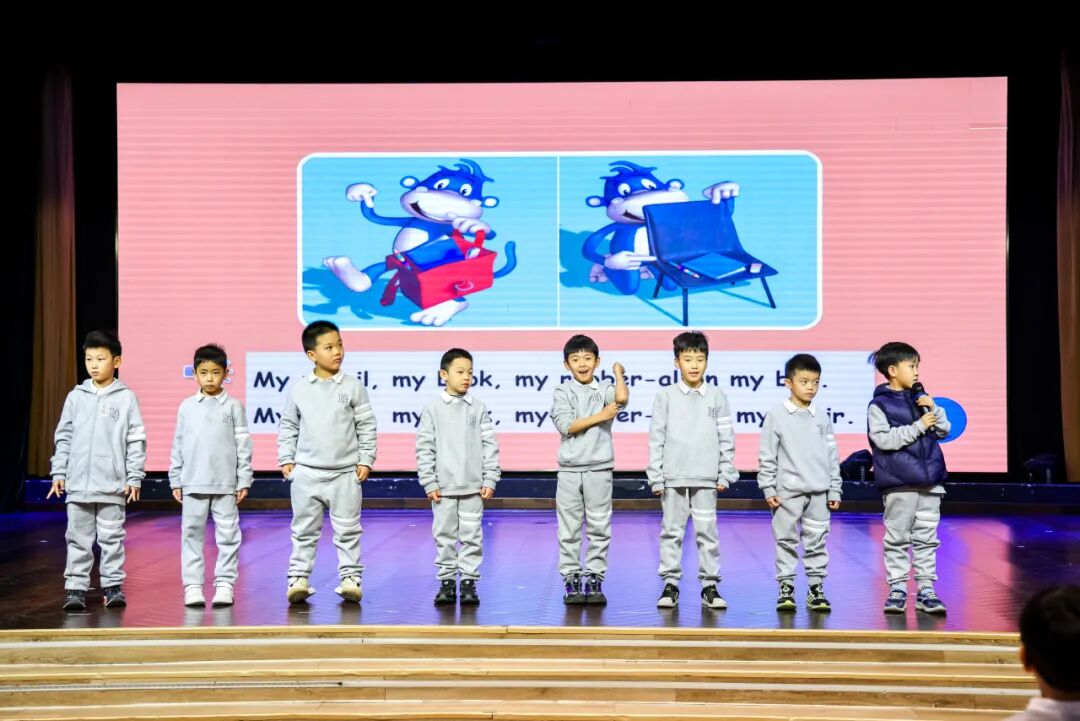 绘本朗读则是一场声音的沉浸之旅。孩子们用清澈的嗓音与恰当的节奏,引领观众步入一个个充满想象的故事天地。他们台风自信、演绎专注,俨然一位位闪亮的“英语小演说家”。