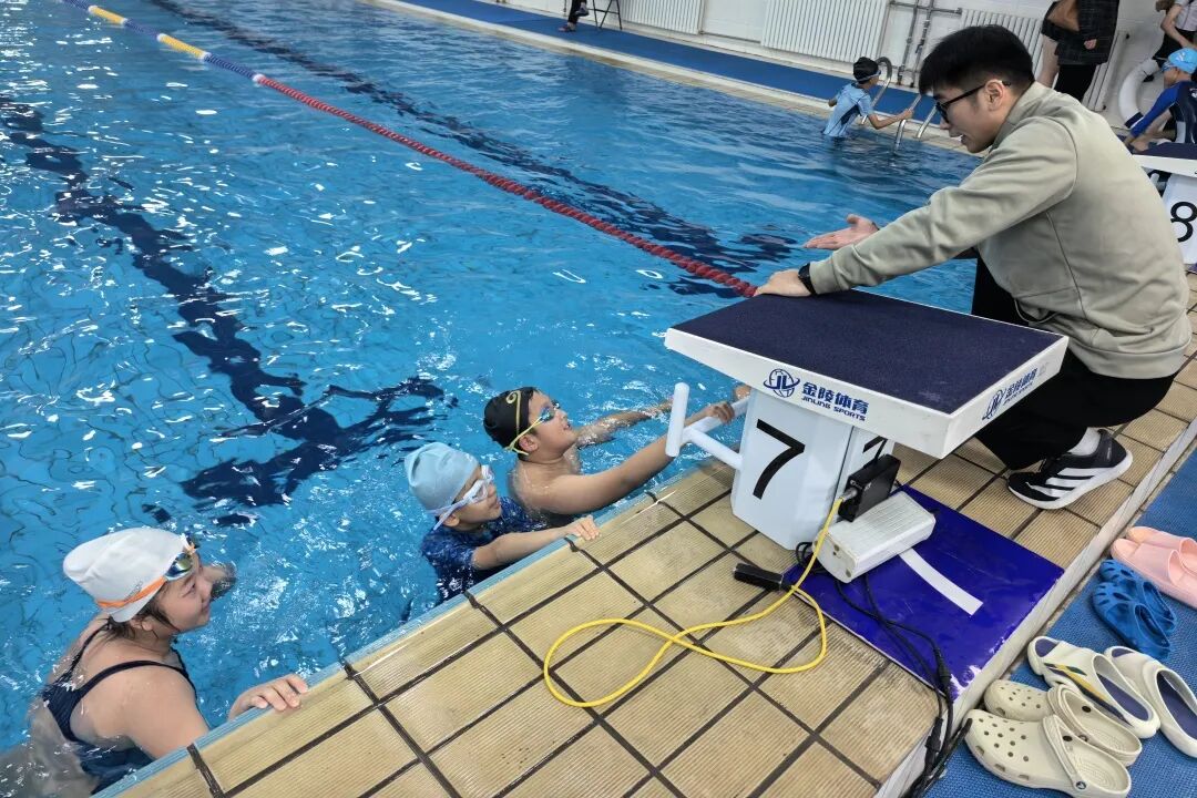 为备战本次赛事,游泳队教练组与领队温婧、王婷婷老师等,长期利用午休、晚自习后的时间组织训练;周末时段,杨教练、朱教练及温老师更是亲自到场,为队员提供细致的一对一指导。他们全心投入、默默耕耘,将专业指导与温暖陪伴融入日常,托举起学子们的赛场梦想。