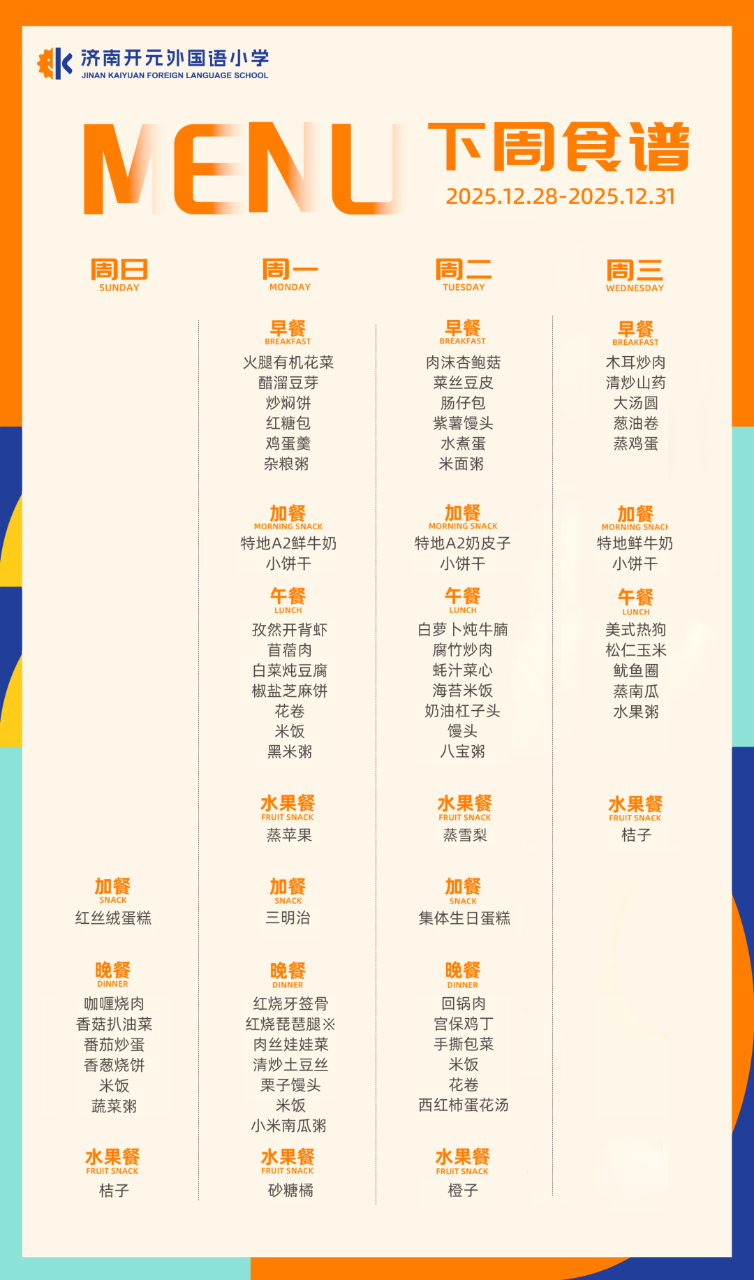 岁末天寒,暖意从舌尖开始。亲爱的孩子们,过去这一年,我们一同在食堂氤氲的香气里,品尝过春的清新、夏的爽脆、秋的丰润,和此刻冬的温暖。我们见证着,每一份用心准备的食物,如何化作你们奔跑时的能量、思考时的专注和绽放在脸上的笑容。