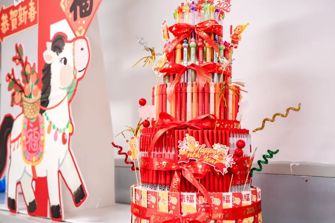 漫步校园,处处皆是迎新盛景:红灯笼高挂,彩带飘扬,每一处装饰都裹着浓浓的年味,每一缕空气都浸润着祥和喜悦,无声诉说着对新年的热切期盼。