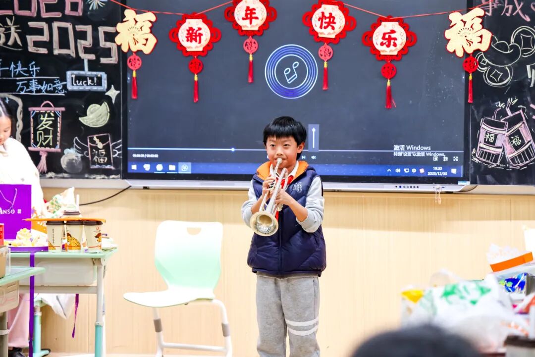 12月30日晚,各班教室变身欢乐海洋——彩带飞舞,气球跃动,每一处布置都在欢唱:“新年快乐!”这场庆元旦主题联欢会暨集体生日会准点开启,浓浓的年味扑面而来。
