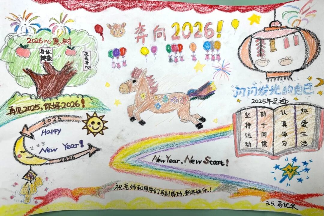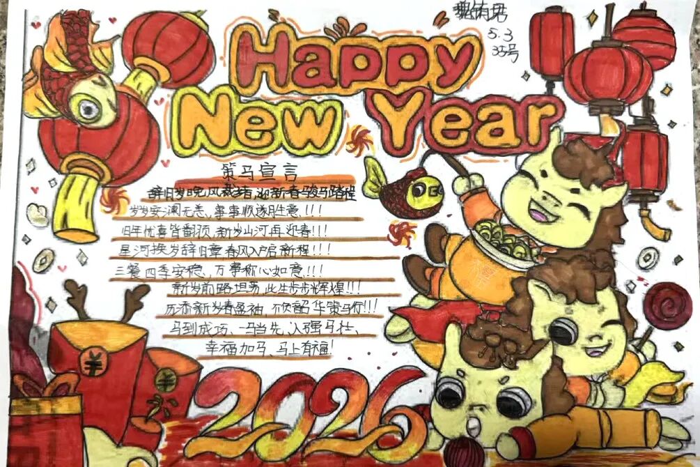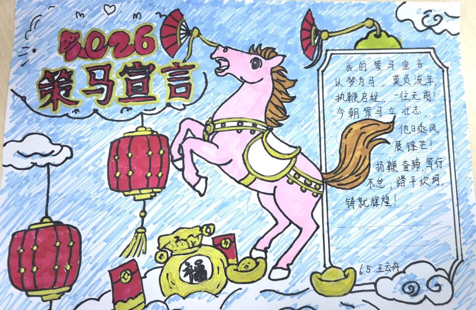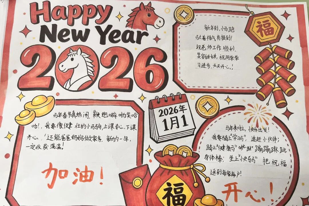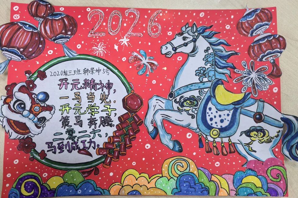 围绕马年主题,各年级开展了特色鲜明的创作活动,让同学们在动手实践中,将对新年的期盼一笔一画、一剪一贴地具象呈现。