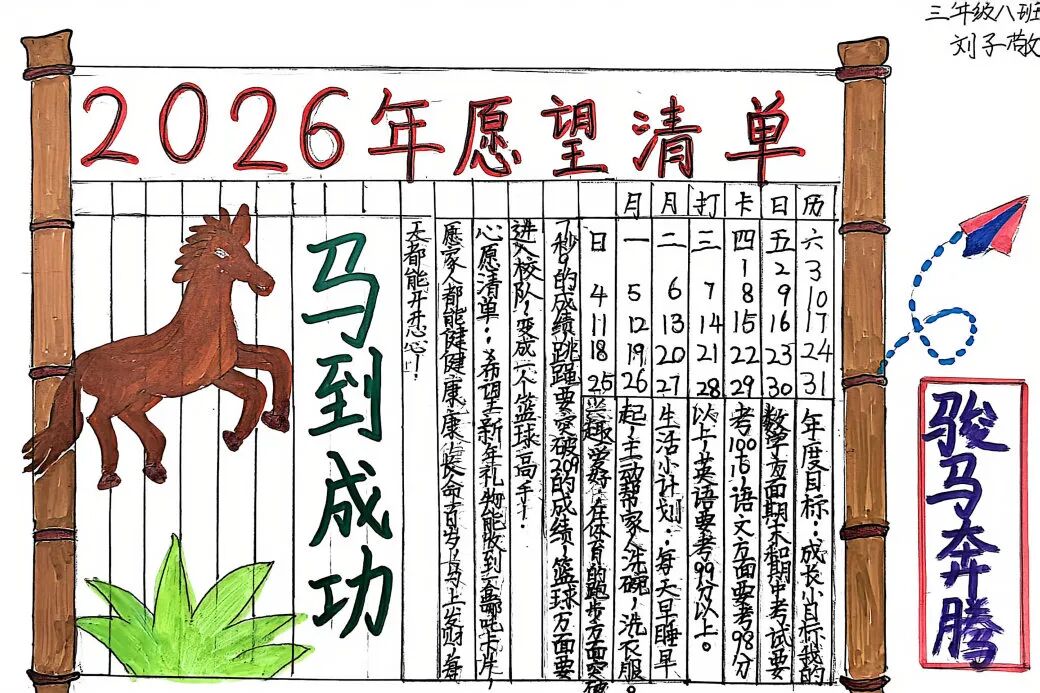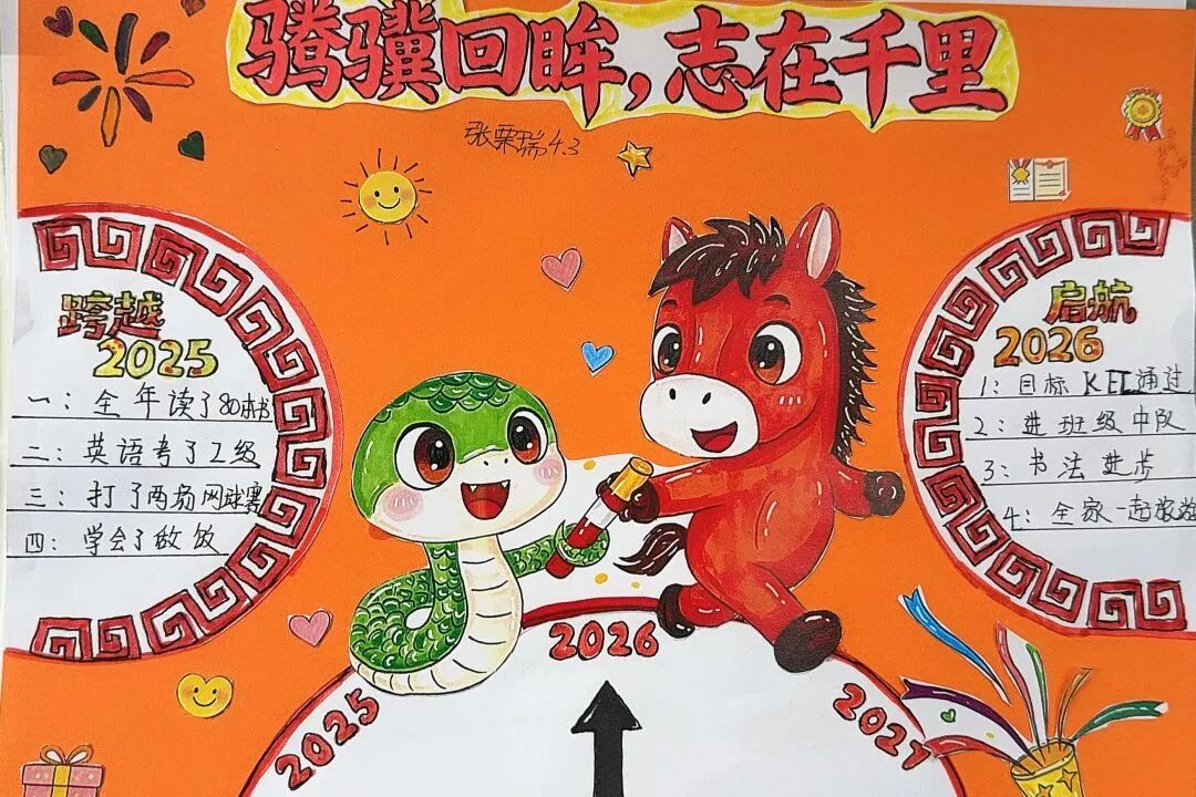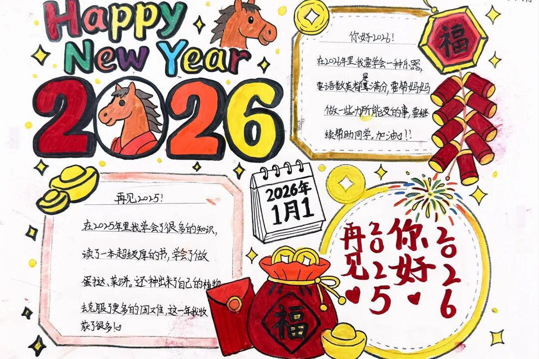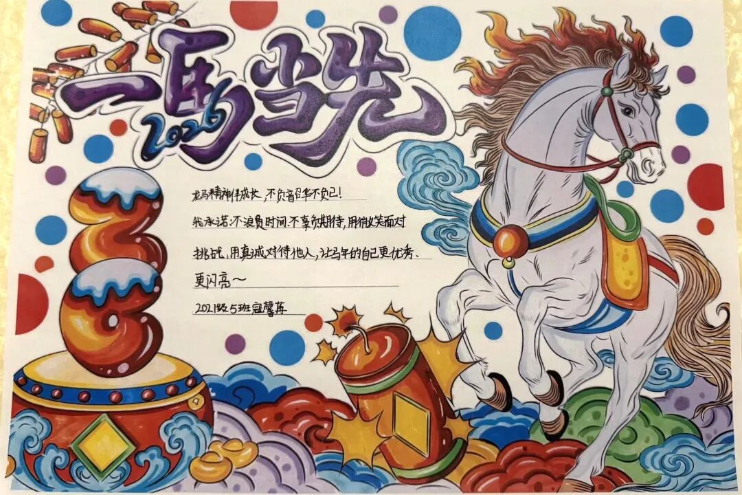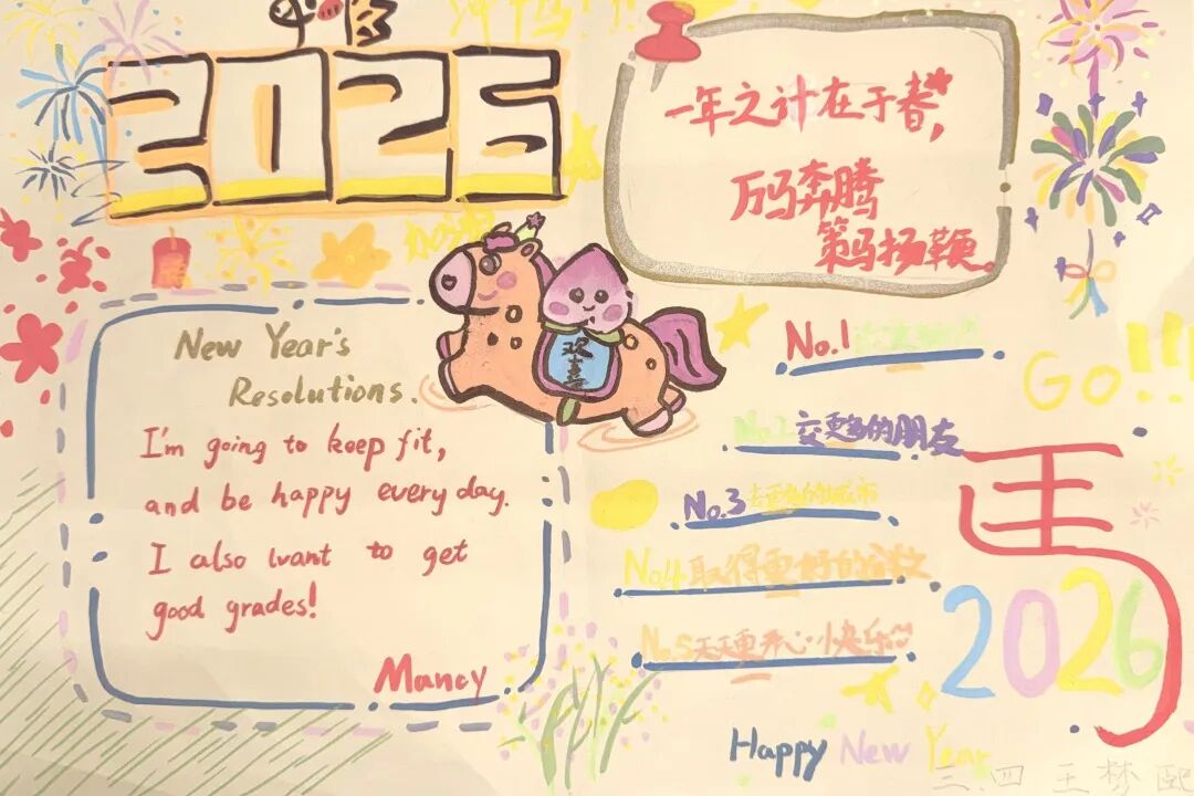 围绕马年主题,各年级开展了特色鲜明的创作活动,让同学们在动手实践中,将对新年的期盼一笔一画、一剪一贴地具象呈现。